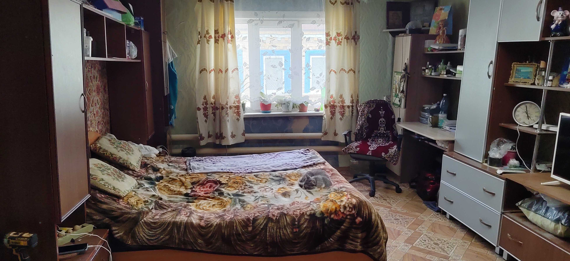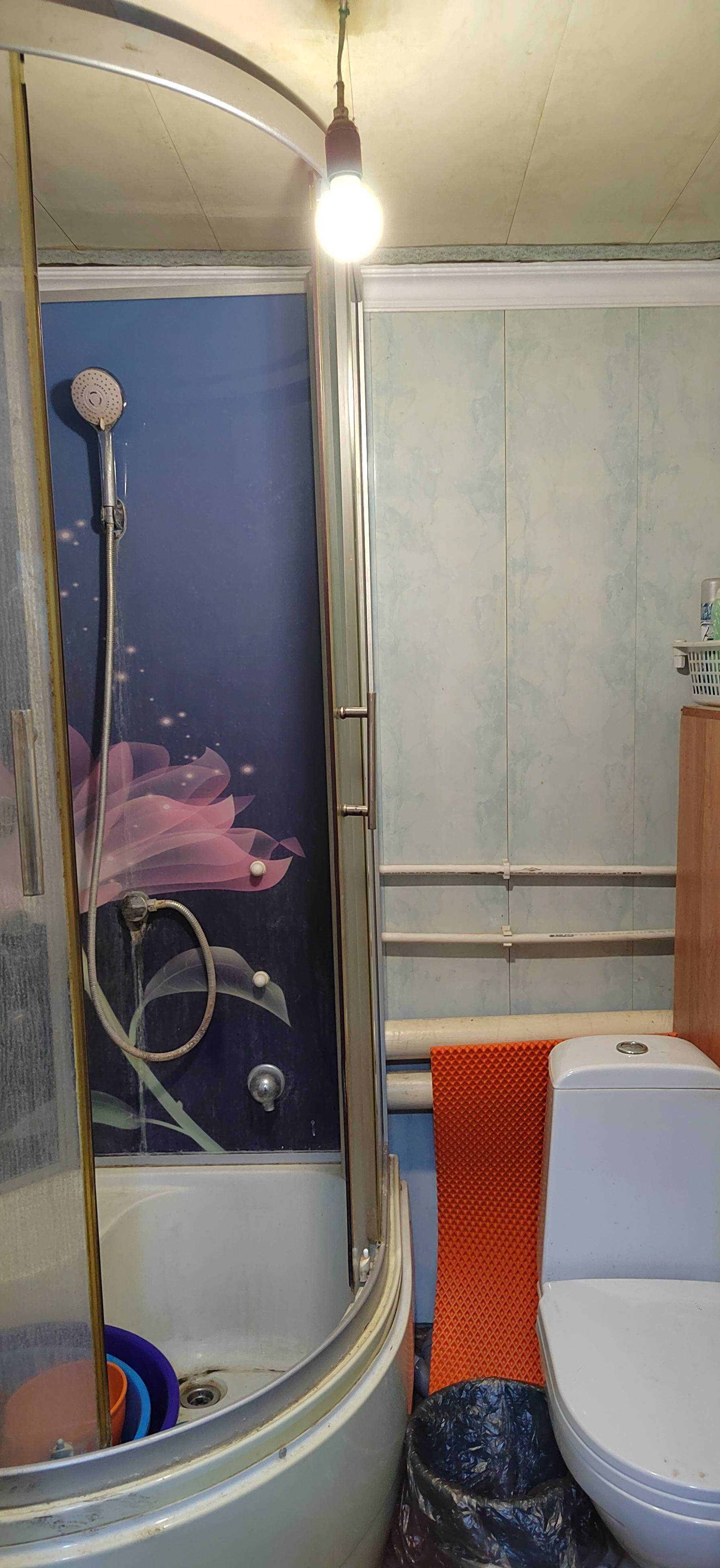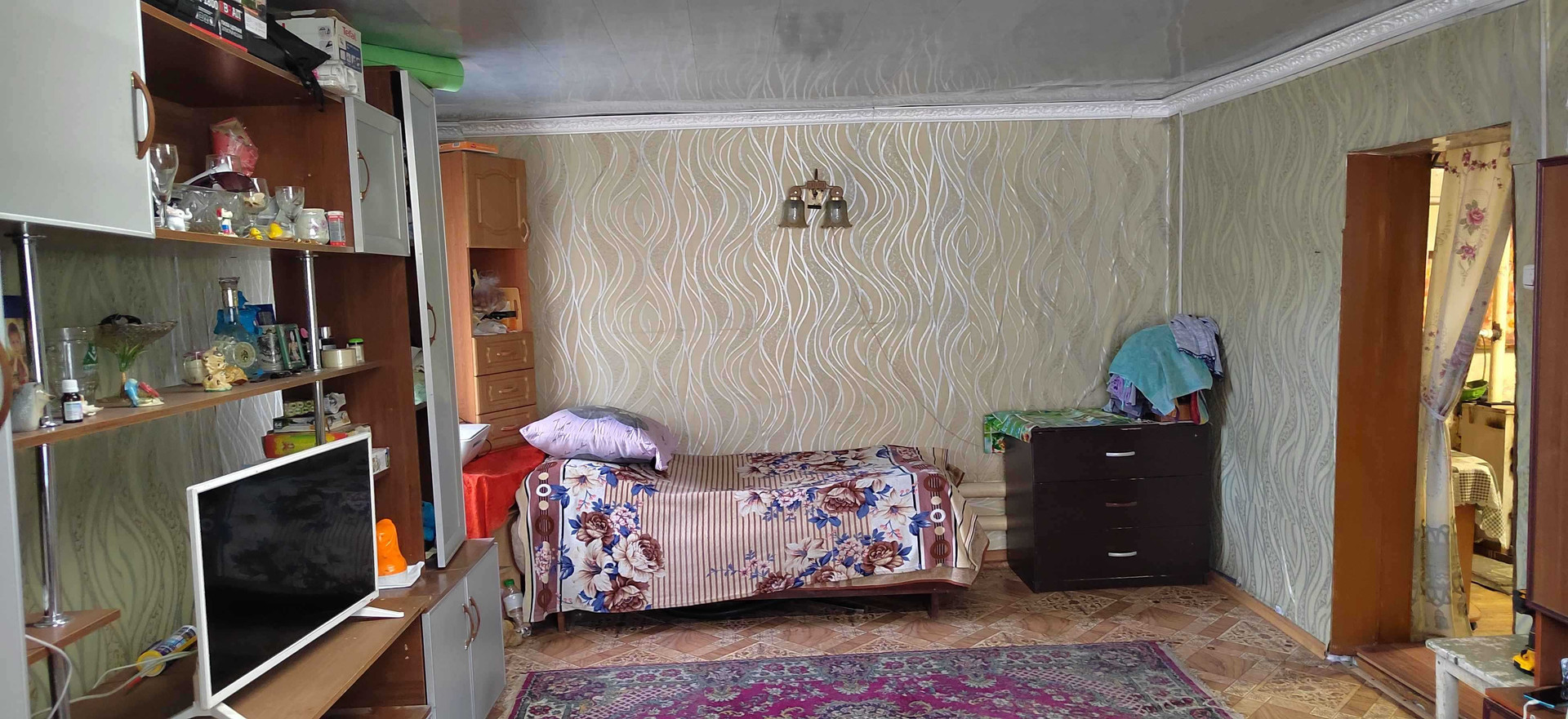 В доме просторная комната, кухня и ванная комната.