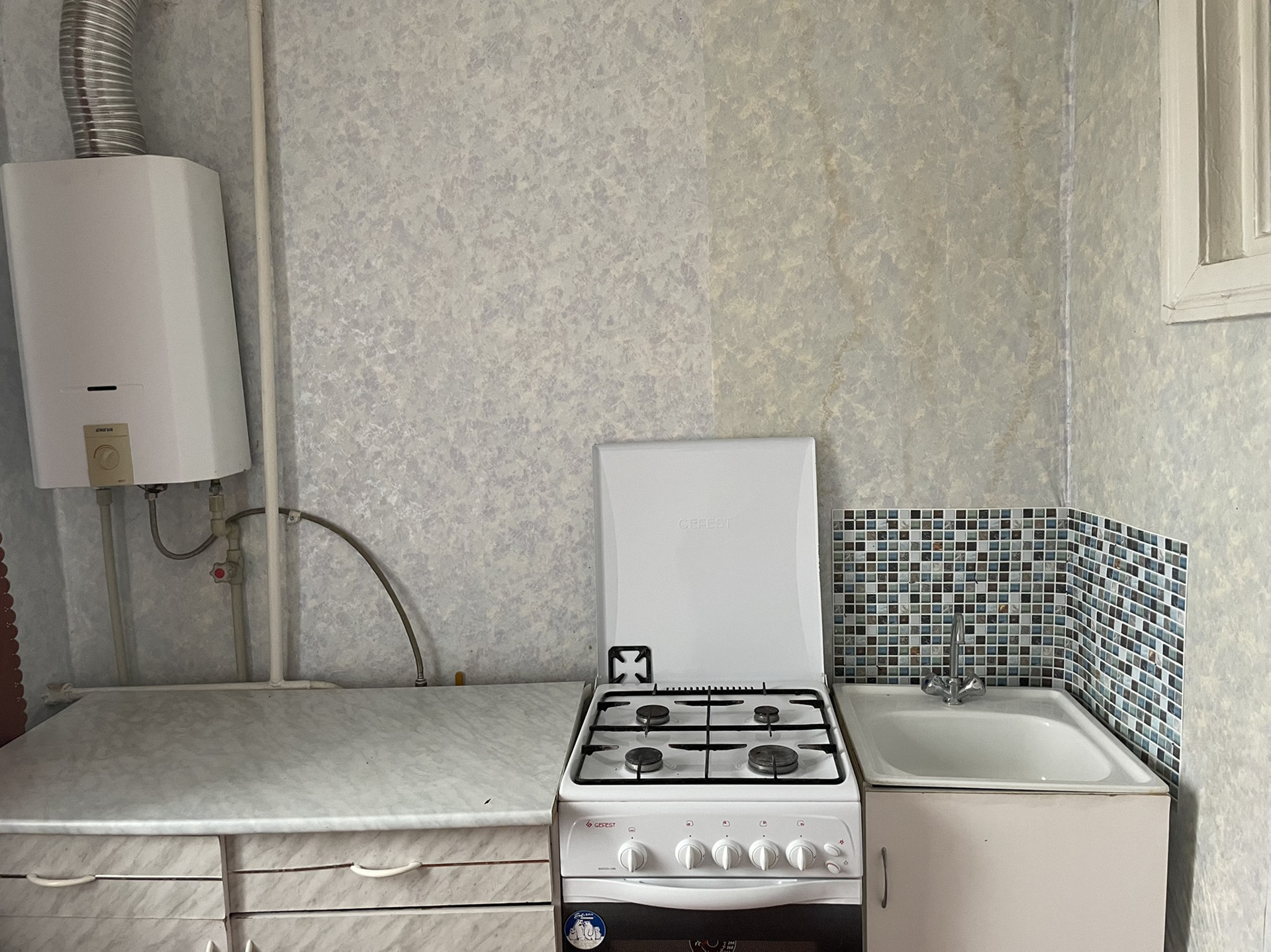 Комната тёплая, светлая. Газовая колонка и водопровод есть, счётчики так же имеются. Мебель которая будет в квартире, остаться. Садик и школы в шаговой доступности.