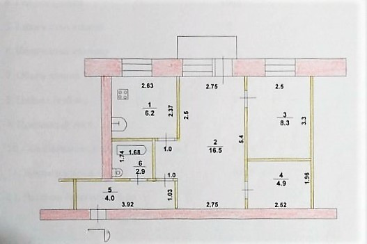 Площадь кухни 6.2 м2
