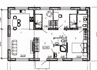 Общая площадь: 55 м2