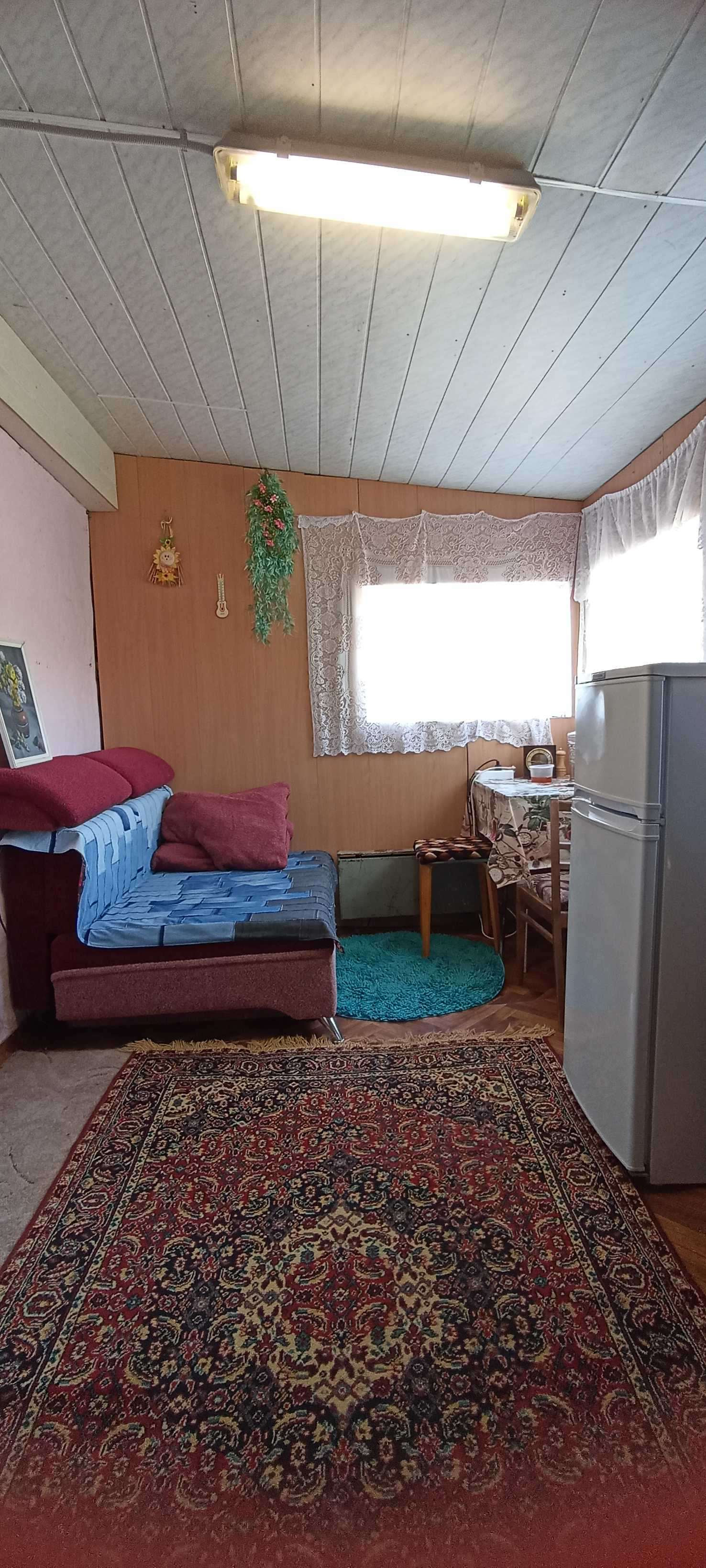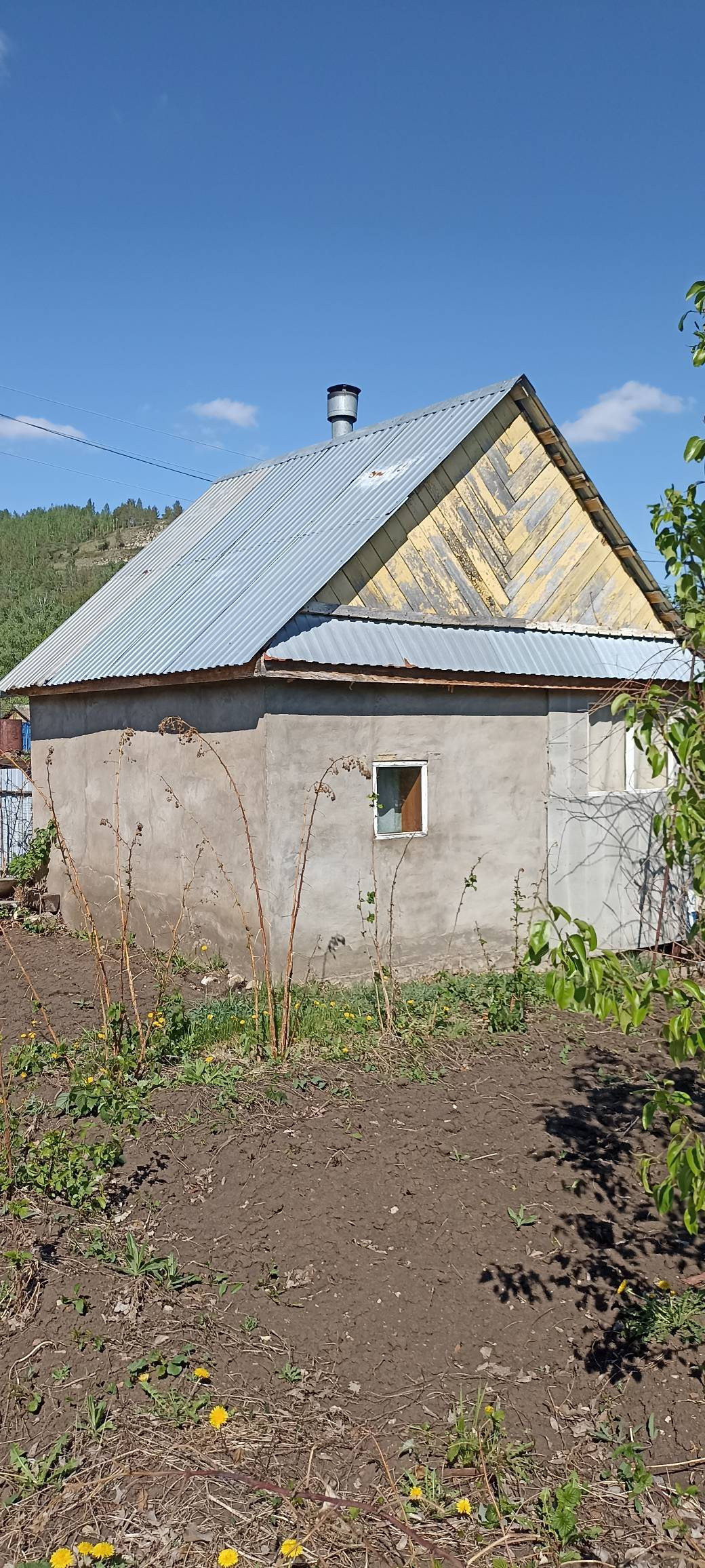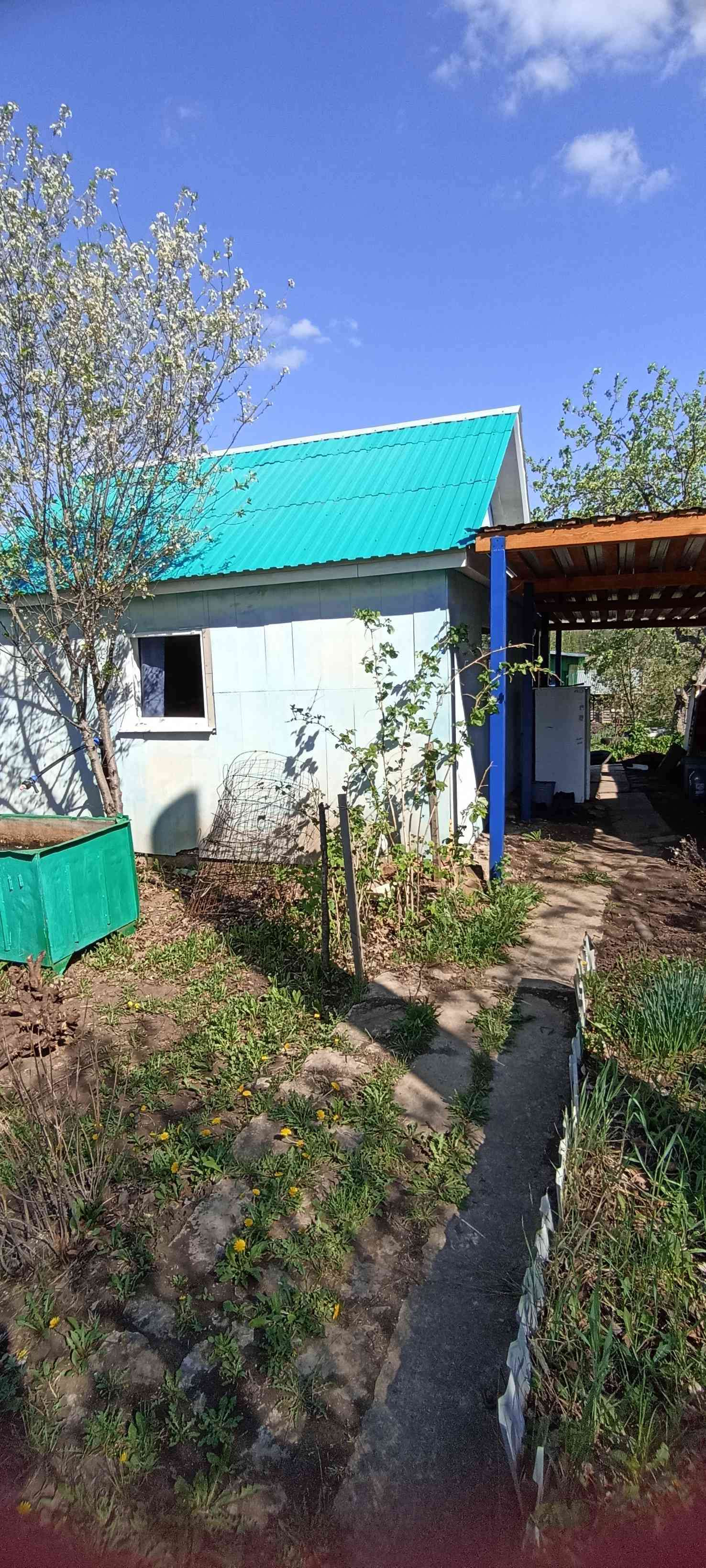 На участке добротный дом из блока, обшитый цсп плитой, две комнаты, подведена вода, установлен электрический водонагреватель, телевизор с приставкой на 30 каналов, мебель вся остается.