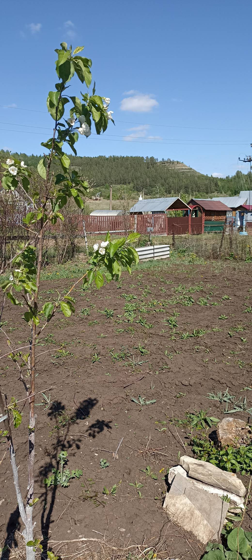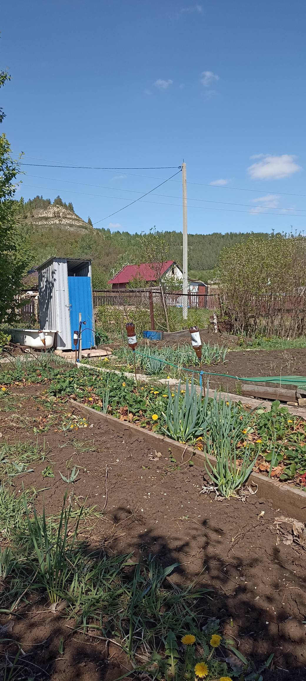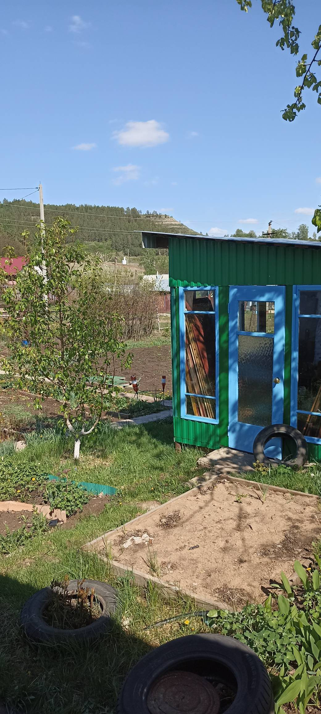 На участке добротный дом из блока, обшитый цсп плитой, две комнаты, подведена вода, установлен электрический водонагреватель, телевизор с приставкой на 30 каналов, мебель вся остается.