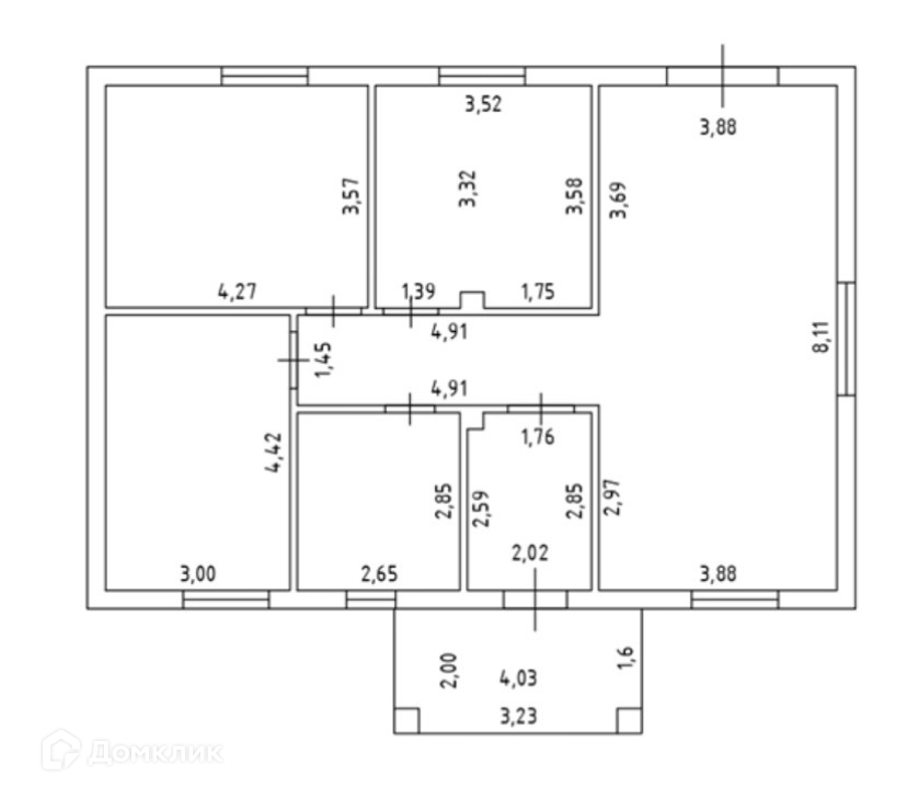●Кухня - гостиная, 3 спальни, большой санузел.