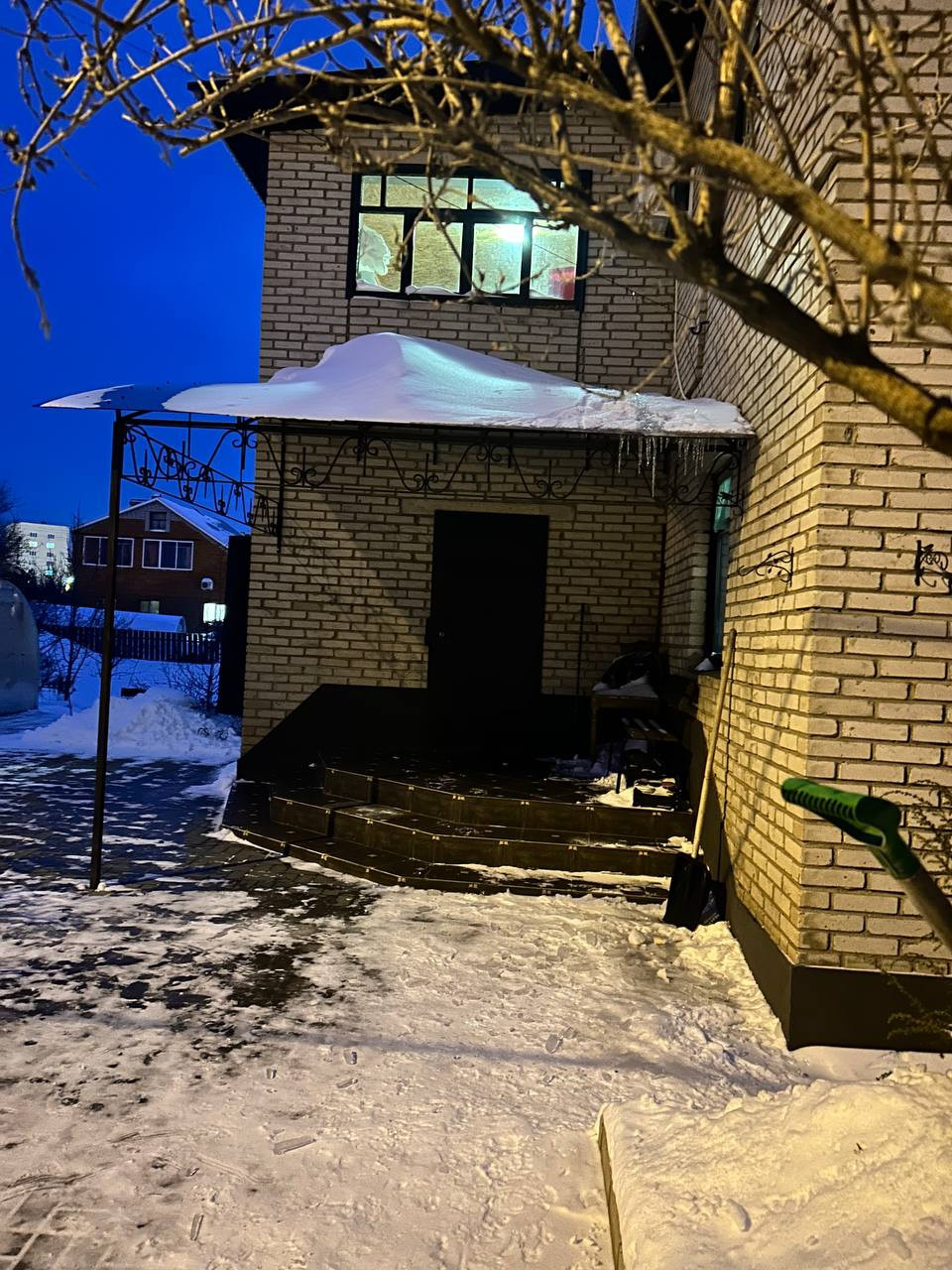 Продаётся двухэтажный дом в 37мкр.(179 кв. м) на участке 5.7 сот + в цоколе (85кв.м) гараж на 3 машины и хоз. отсек. На первом этаже-санузел с душевой кабиной, гостиная с камином и кухня-столовая.На втором этаже есть три комнаты, холл,туалет и большой балкон-лоджия.Дом кирпичный, крыша металлочерепица, двор покрыт тротуарной плиткой, теплица и разбит большой цветник, над большим крыльцом навес из поликарбоната.