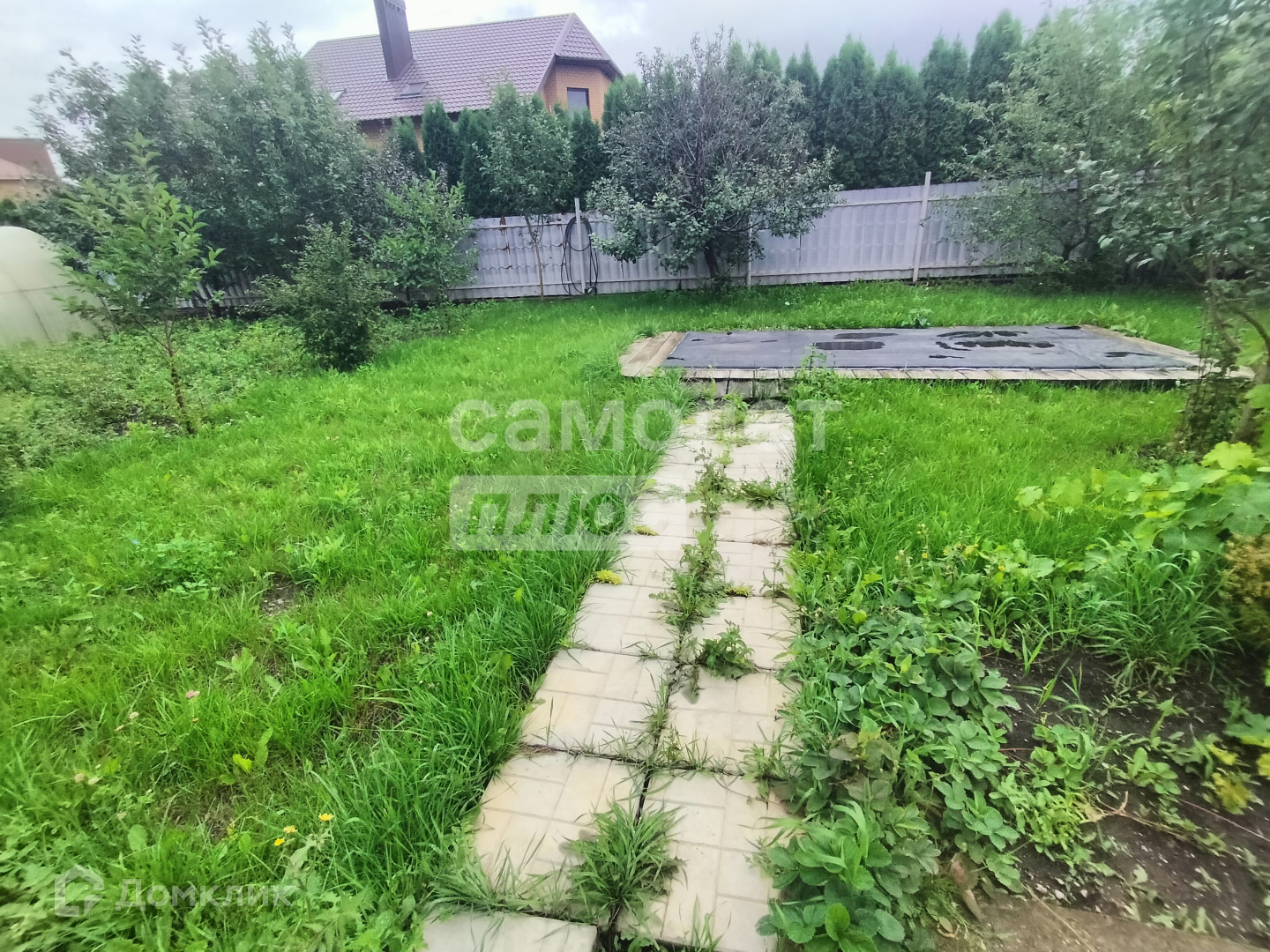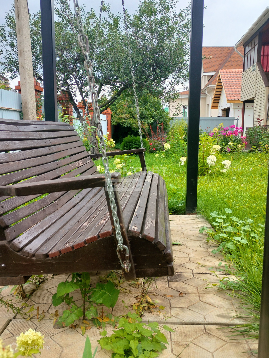 во дворе бетонные дорожки.