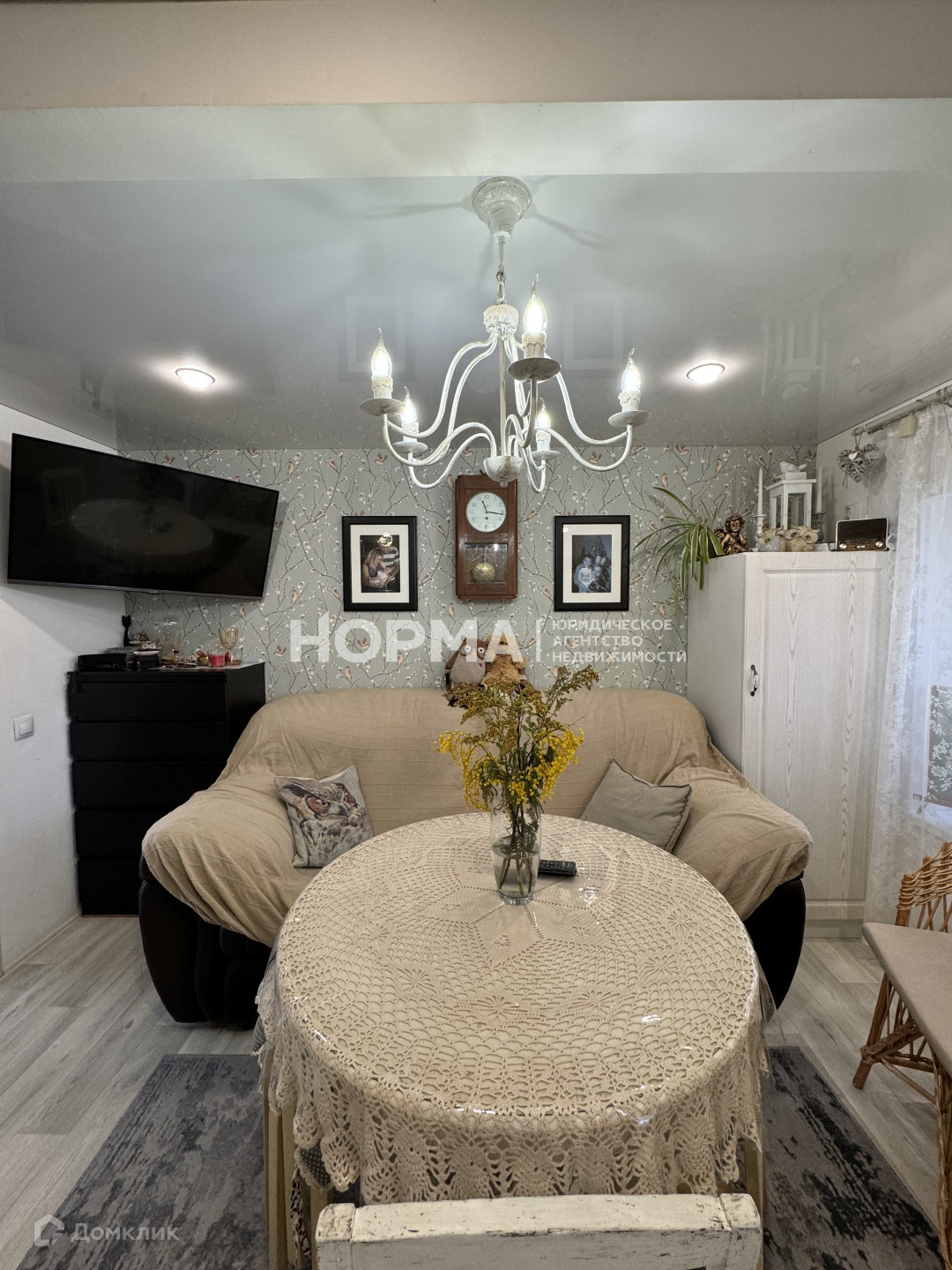 Очень теплый и уютный. 3 комнаты, 2 из которых это спальни.  В доме сделан ремонт. Поменяна вся проводка.  Остается практически вся мебель.