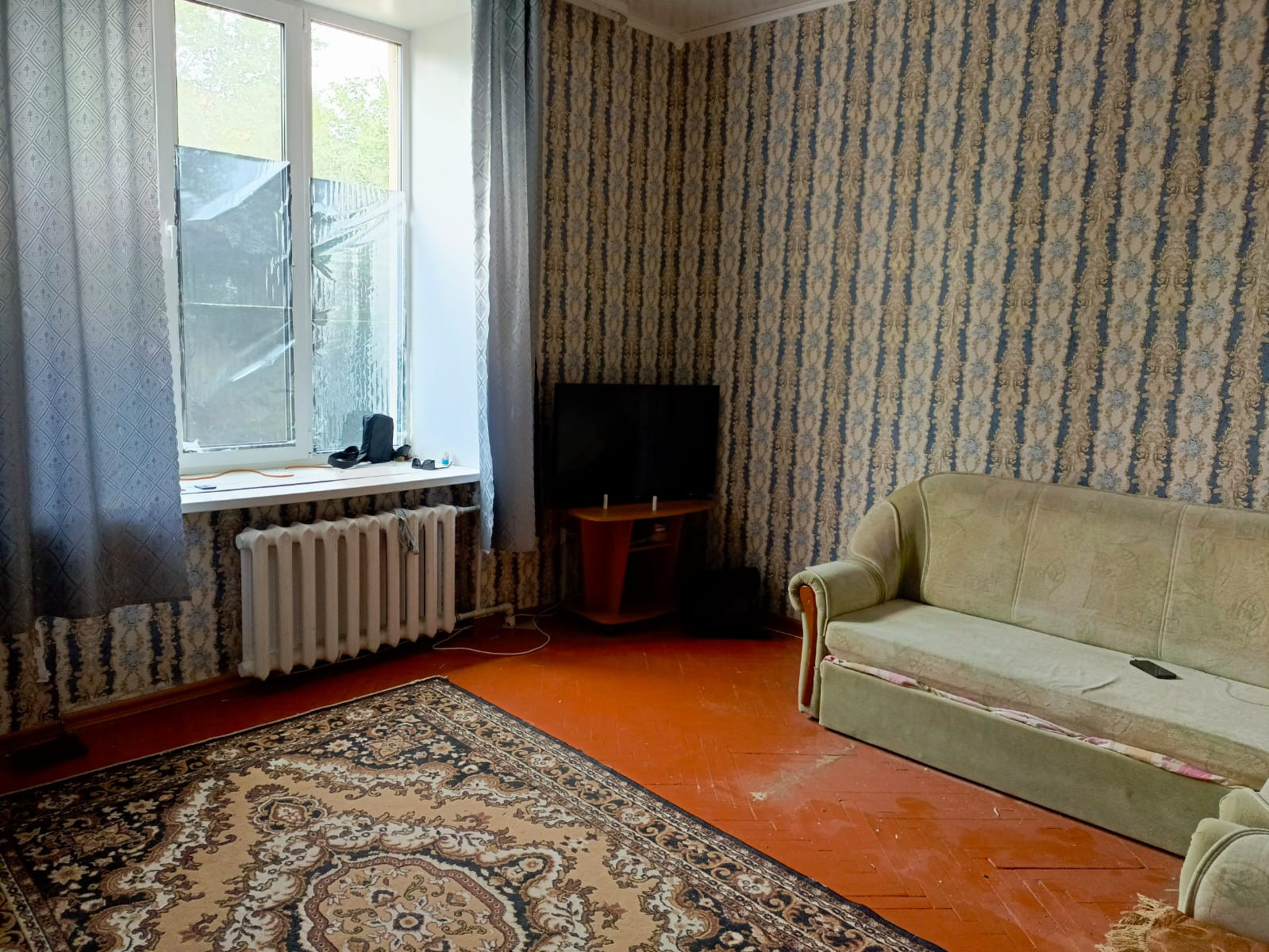 Состоит из 2 комнат, одна спальня и большой зал. Так же есть небольшая кухня, (вода в комнате имеется), большая вместительная прихожая. Душевая и санузел находятся через стенку, находятся в индивидуальном пользовании и закрывается на замок. В комнатах установлены пластиковые окна. Нужен ремонт, но состояние не критичное, можно сразу заехать и жить. В доме производился капремонт крыши.