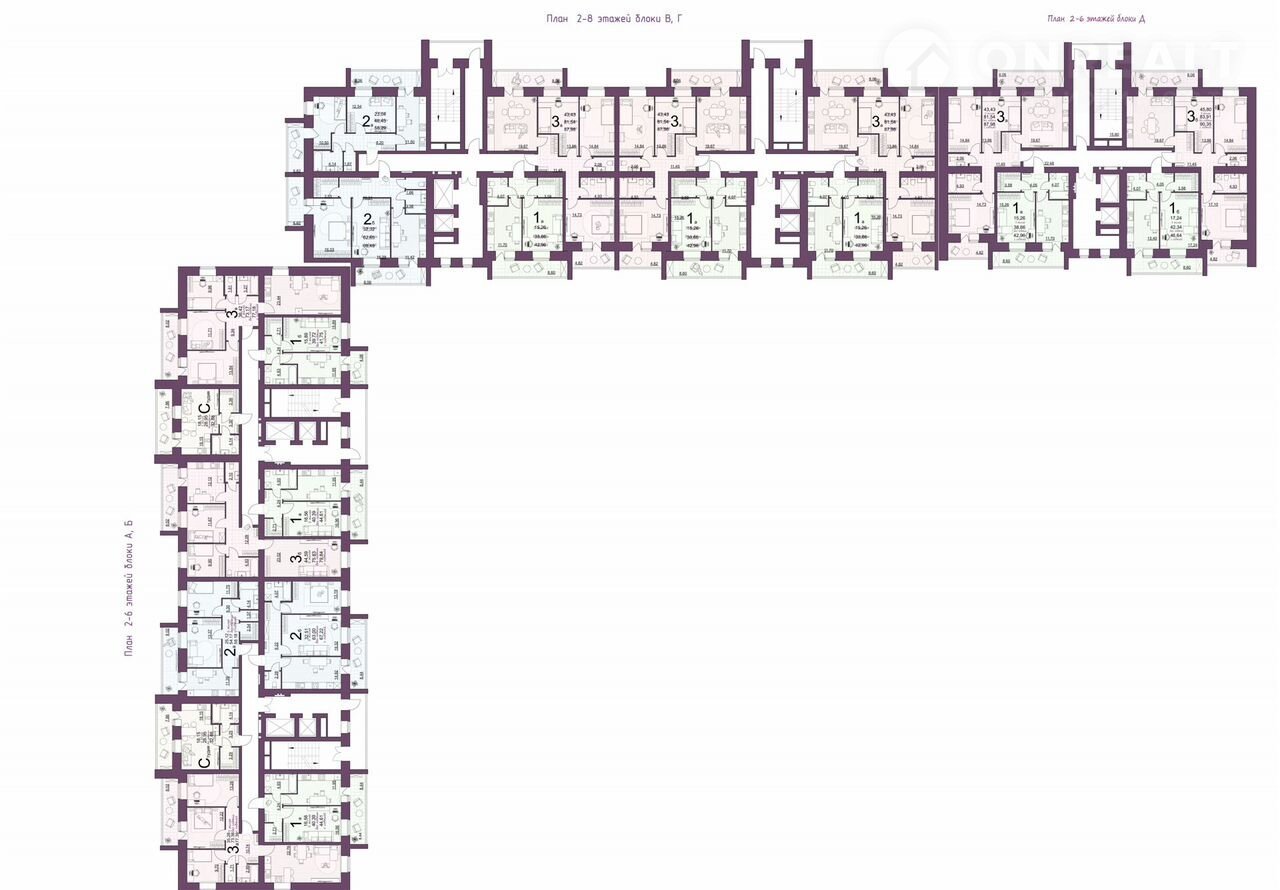 Жилая площадь 43.4 м2