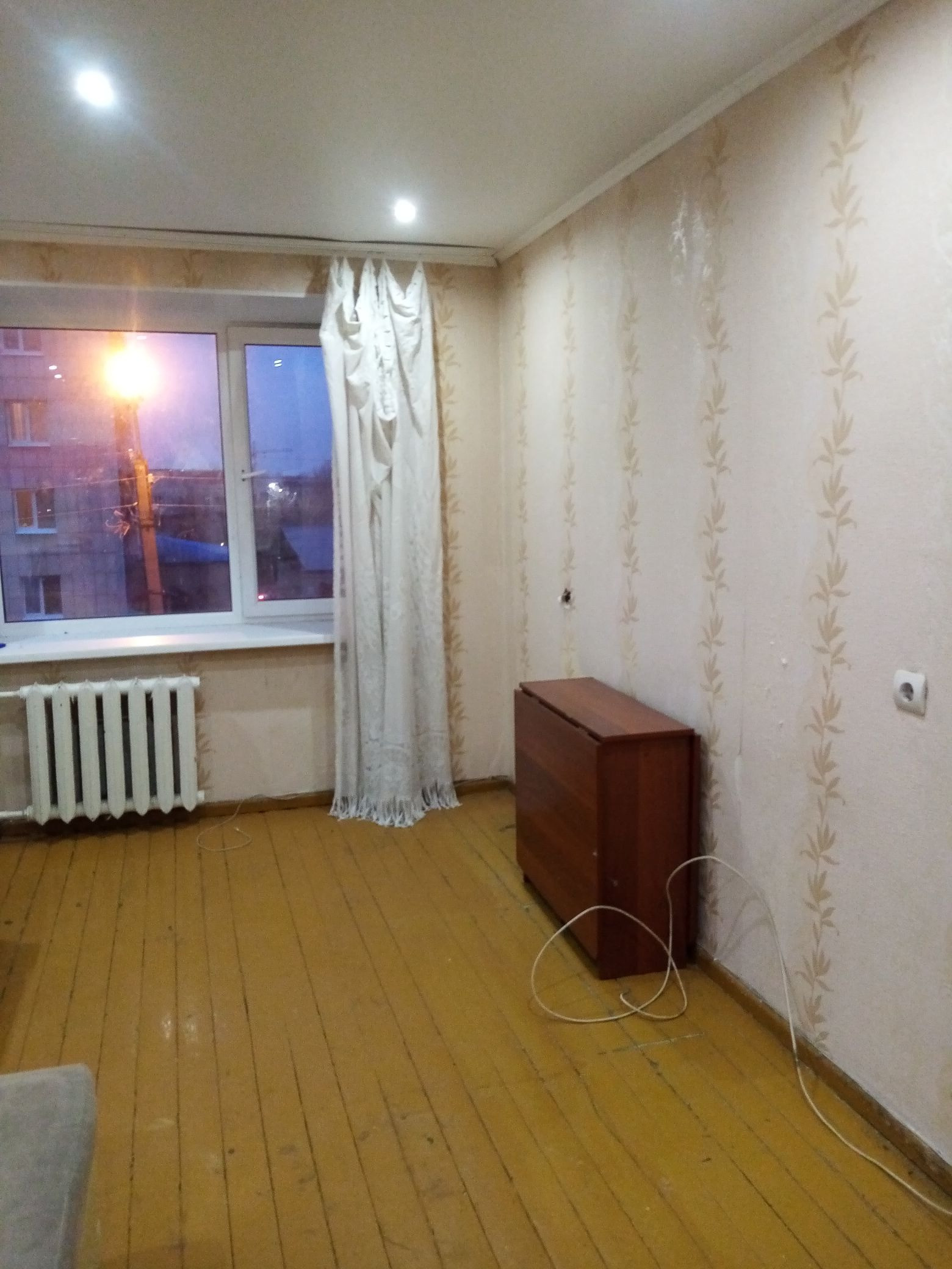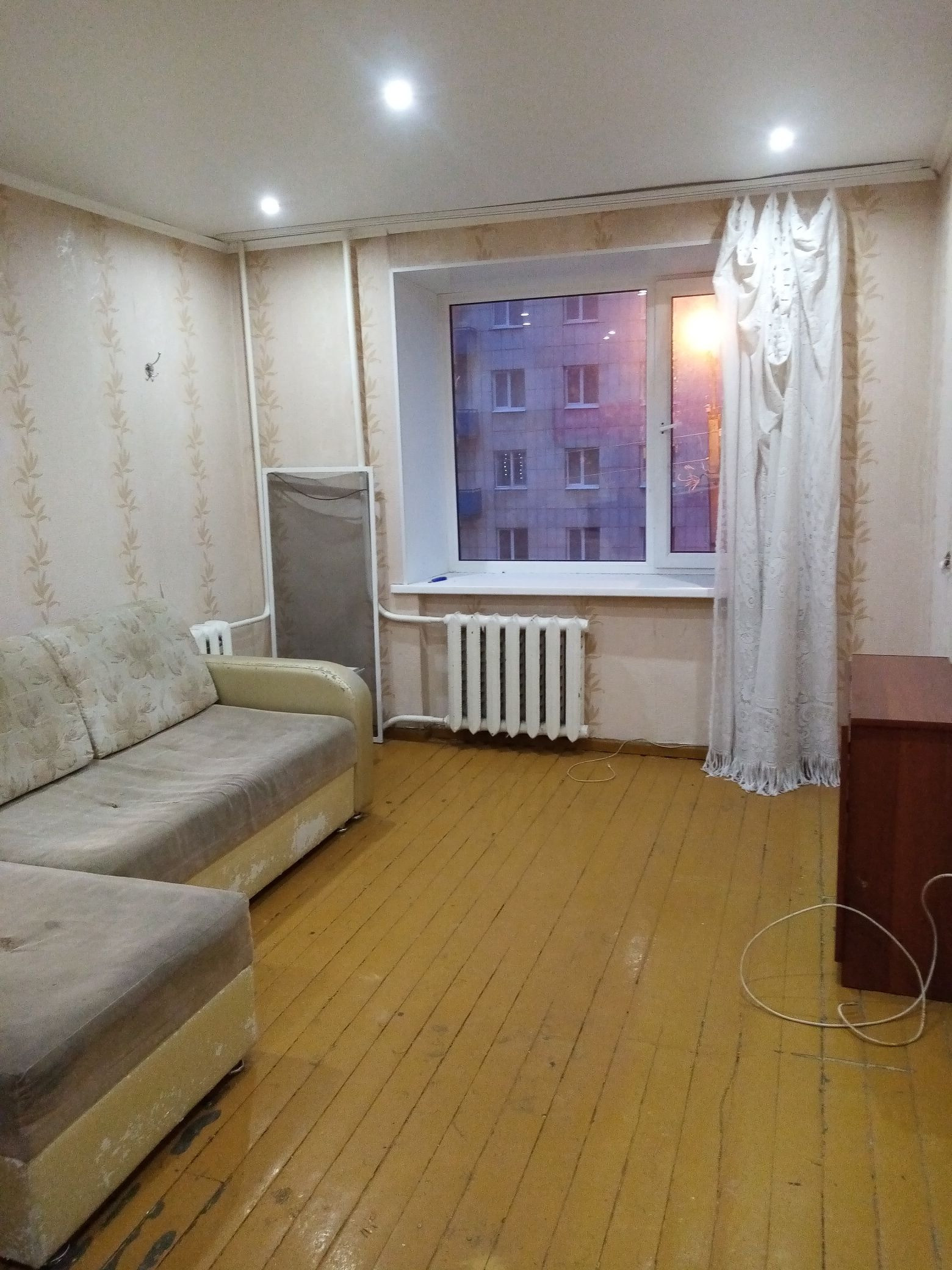 Комната теплая, пластиковое окно. Соседи спокойные, в соседней комнате никто не проживает. Вода есть. Мебель, холодильник остается. Стиральная машина по договорённости.