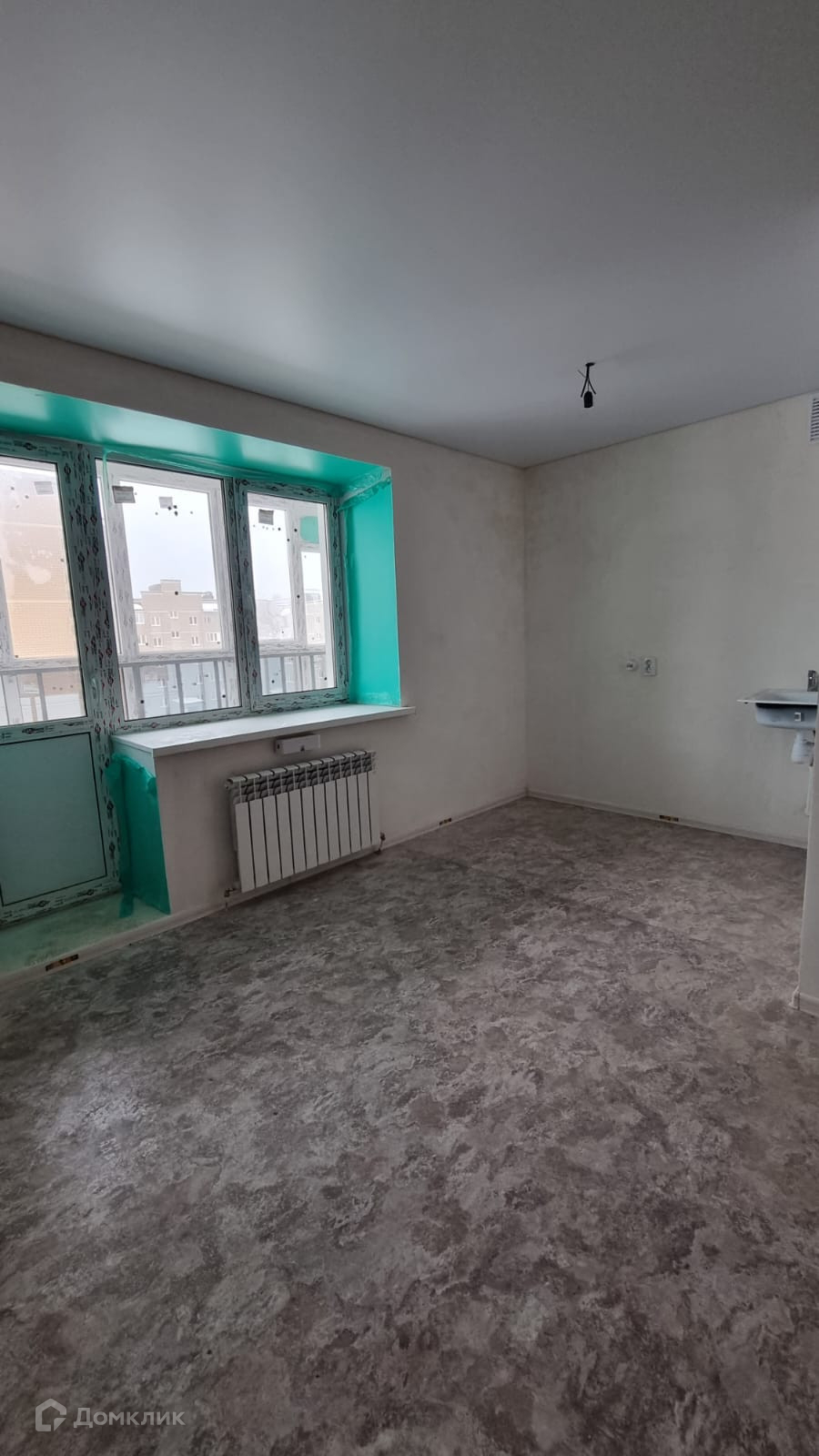 Квартира продается с ремонтом от застройщика: на полу линолеум, потолки натяжные, санузел совмещенный, установлены ванная, раковина, унитаз, на кухне раковина, большая лоджия с панорамным остеклением.