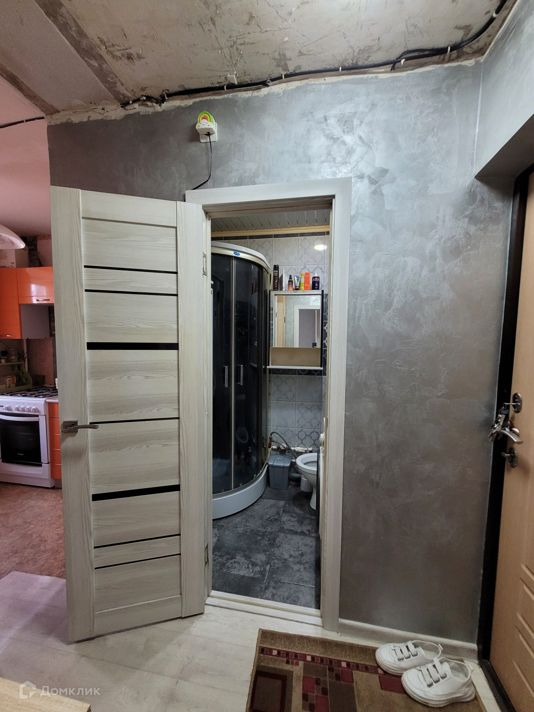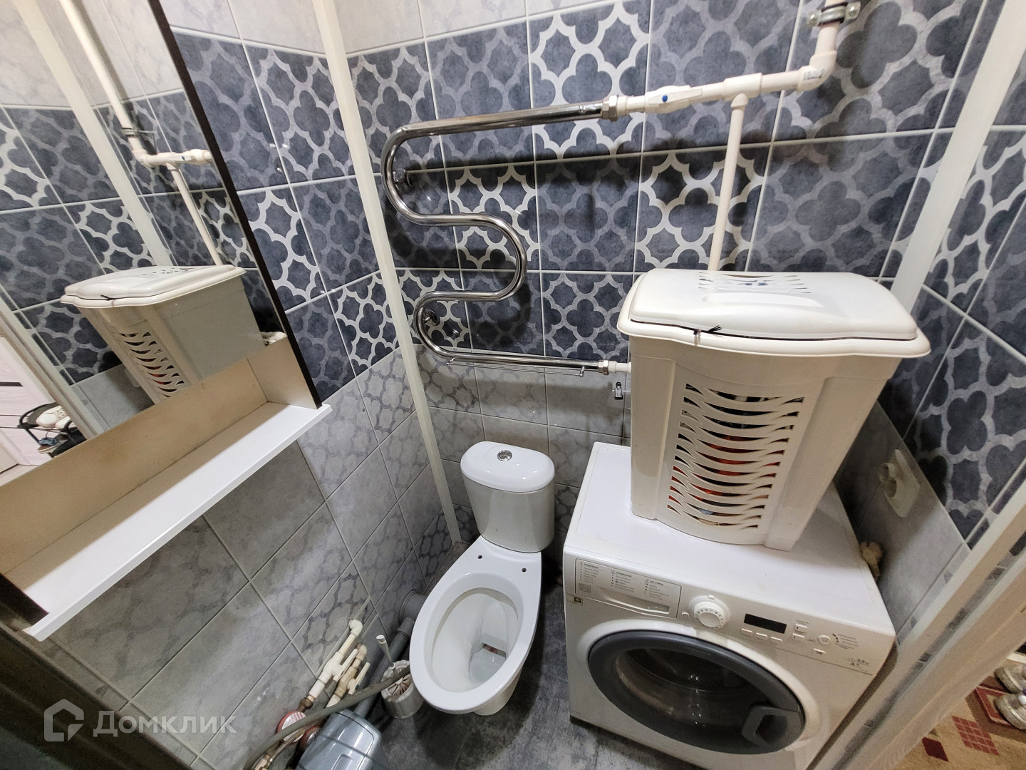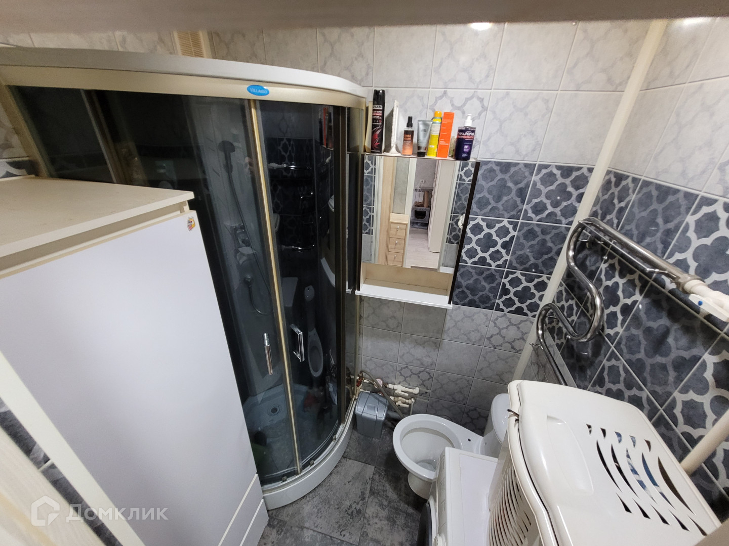 В С/У ПВХ панели, душевая кабина, шкаф, зеркало.