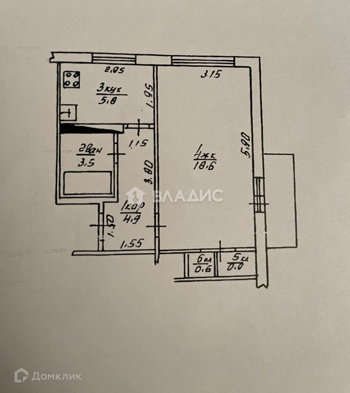 Балкон, лоджия 1 балкон