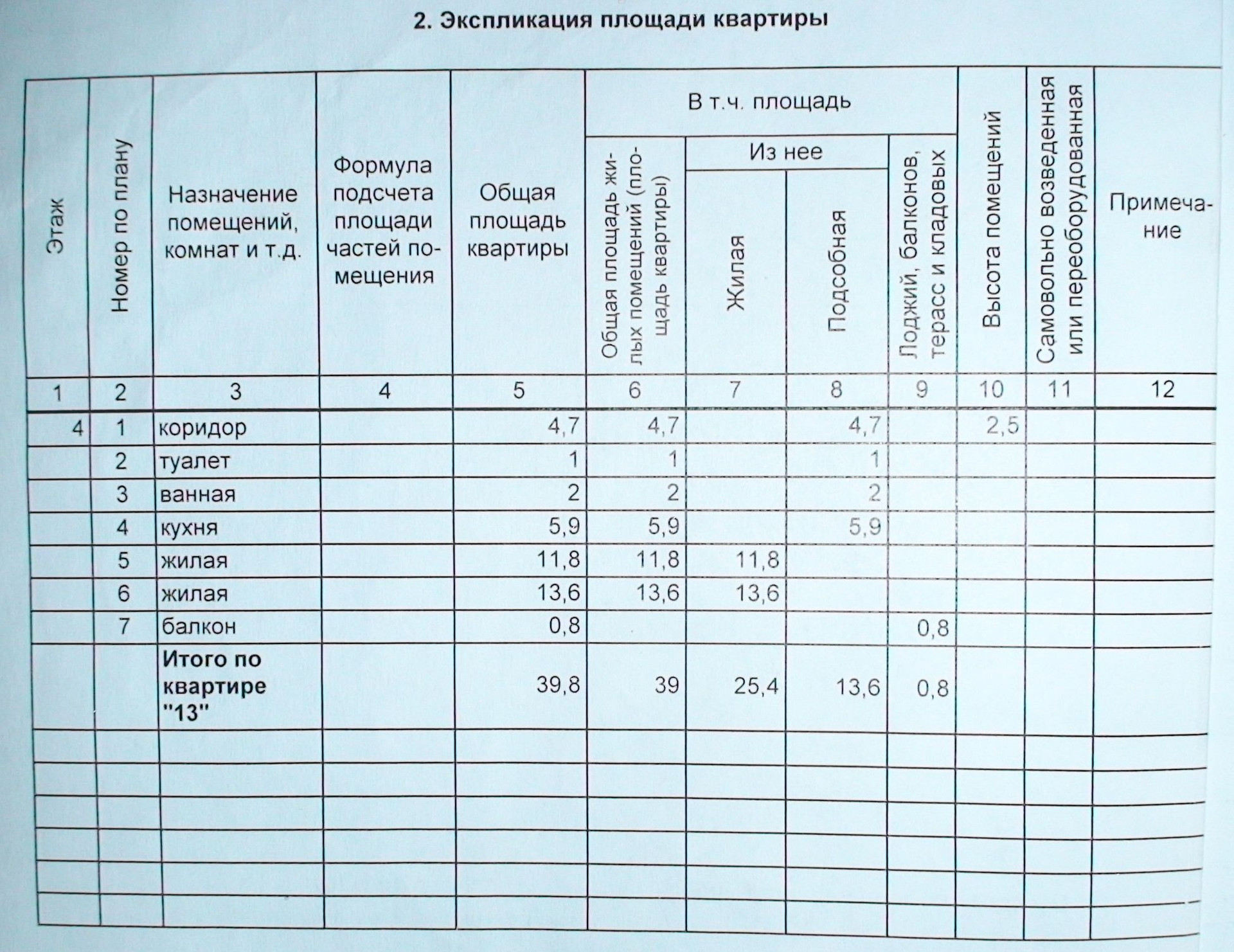 Общая площадь 39.8 м2