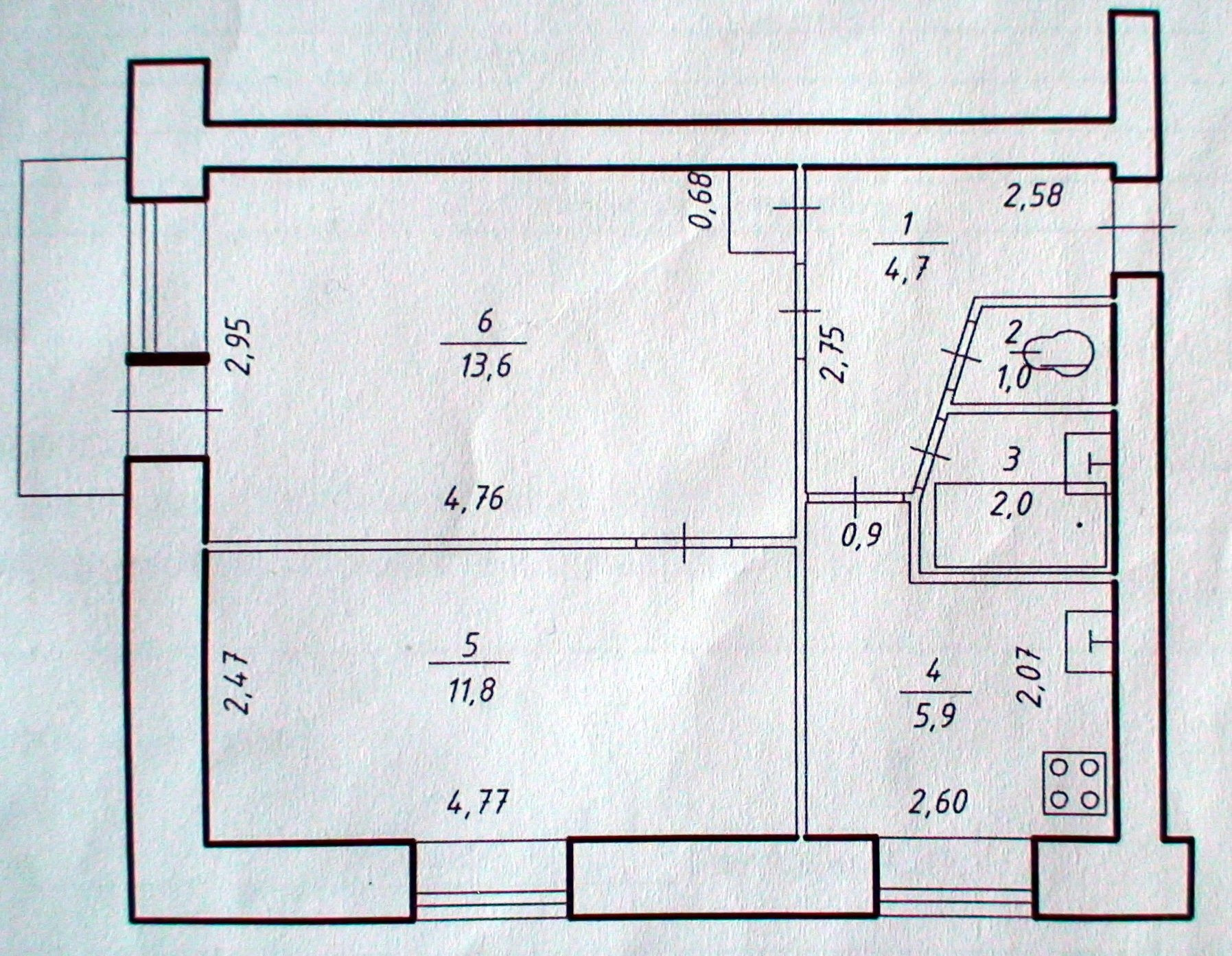 Площадь кухни 5.9 м2