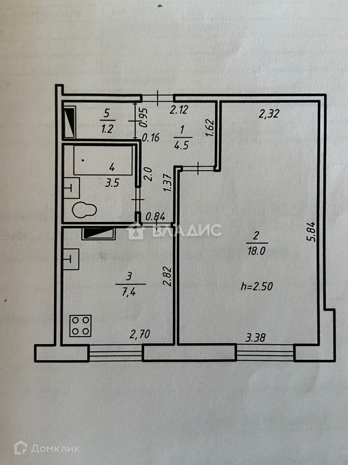 Общая площадь 34.6 м2