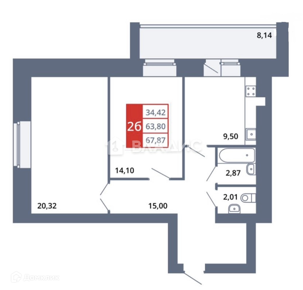 Общая площадь 67.87 м2