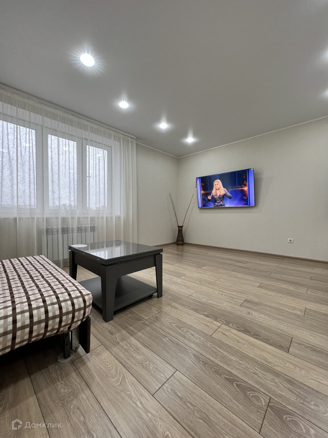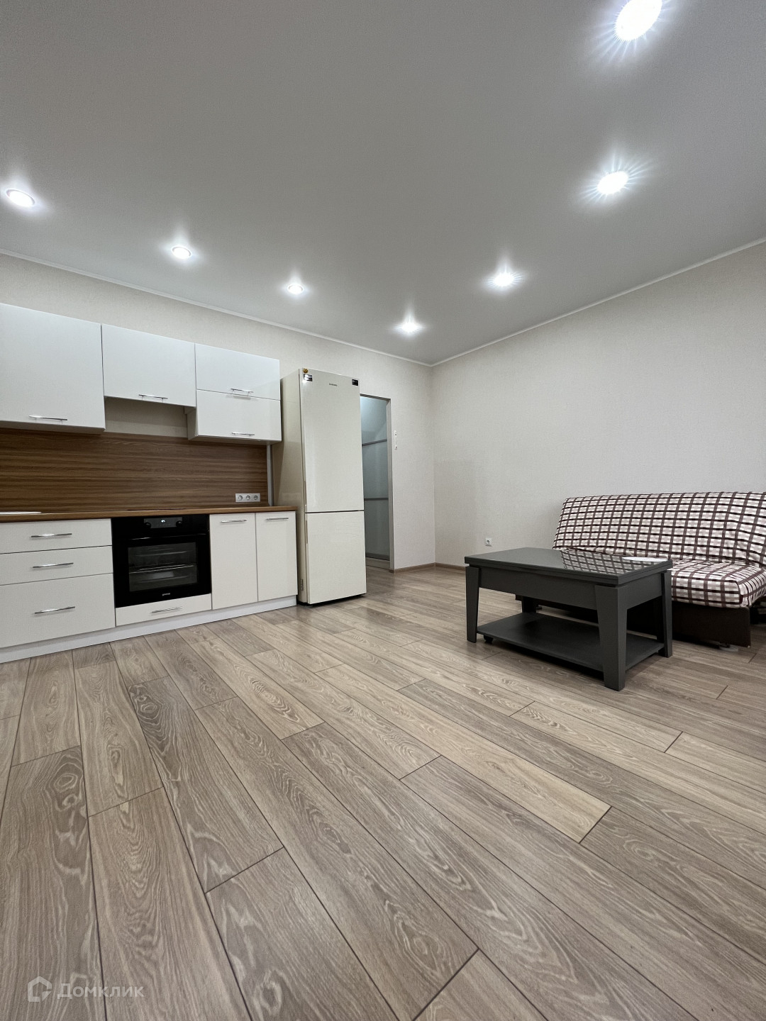 Светлая, чистая и уютная студия, выполнен качественный и современный ремонт, натяжные потолки с точечным освещением, на полу ламинат, санузел и ванна в кафеле, инсталляция.