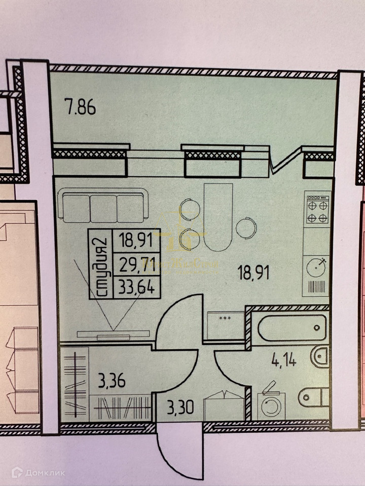 Жилая площадь 29.71 м2