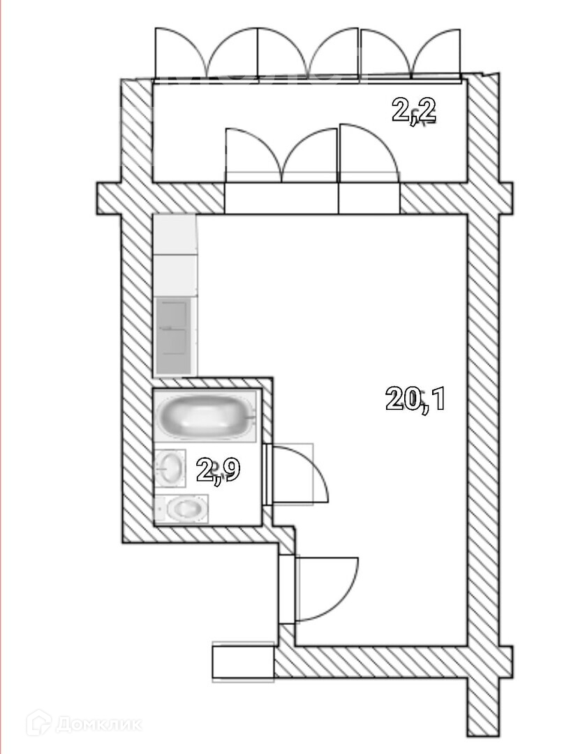 Общая площадь 23.6 м2