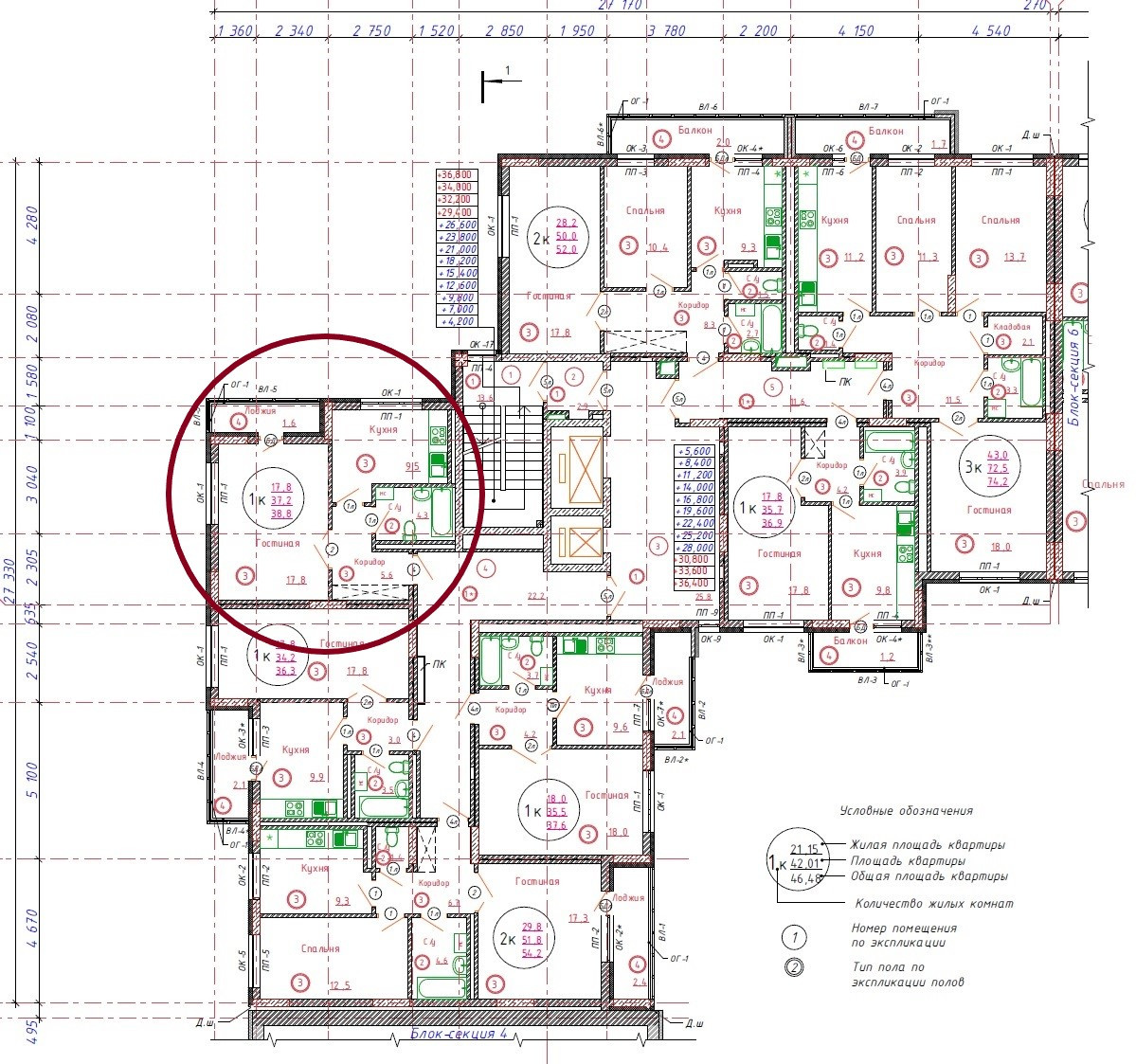 Общая площадь 38.8 м2