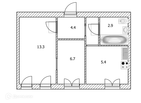 Общая площадь 32.7 м2
