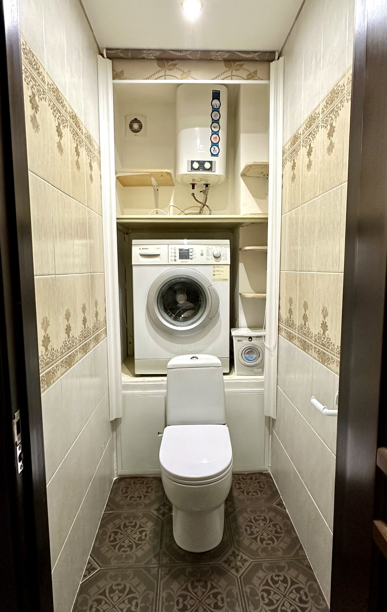 - под стиральную машину сварена металлоконструкция в туалете;