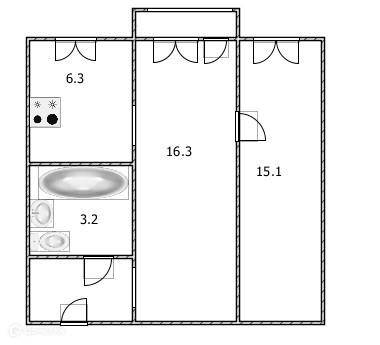 Площадь кухни 6.3 м2