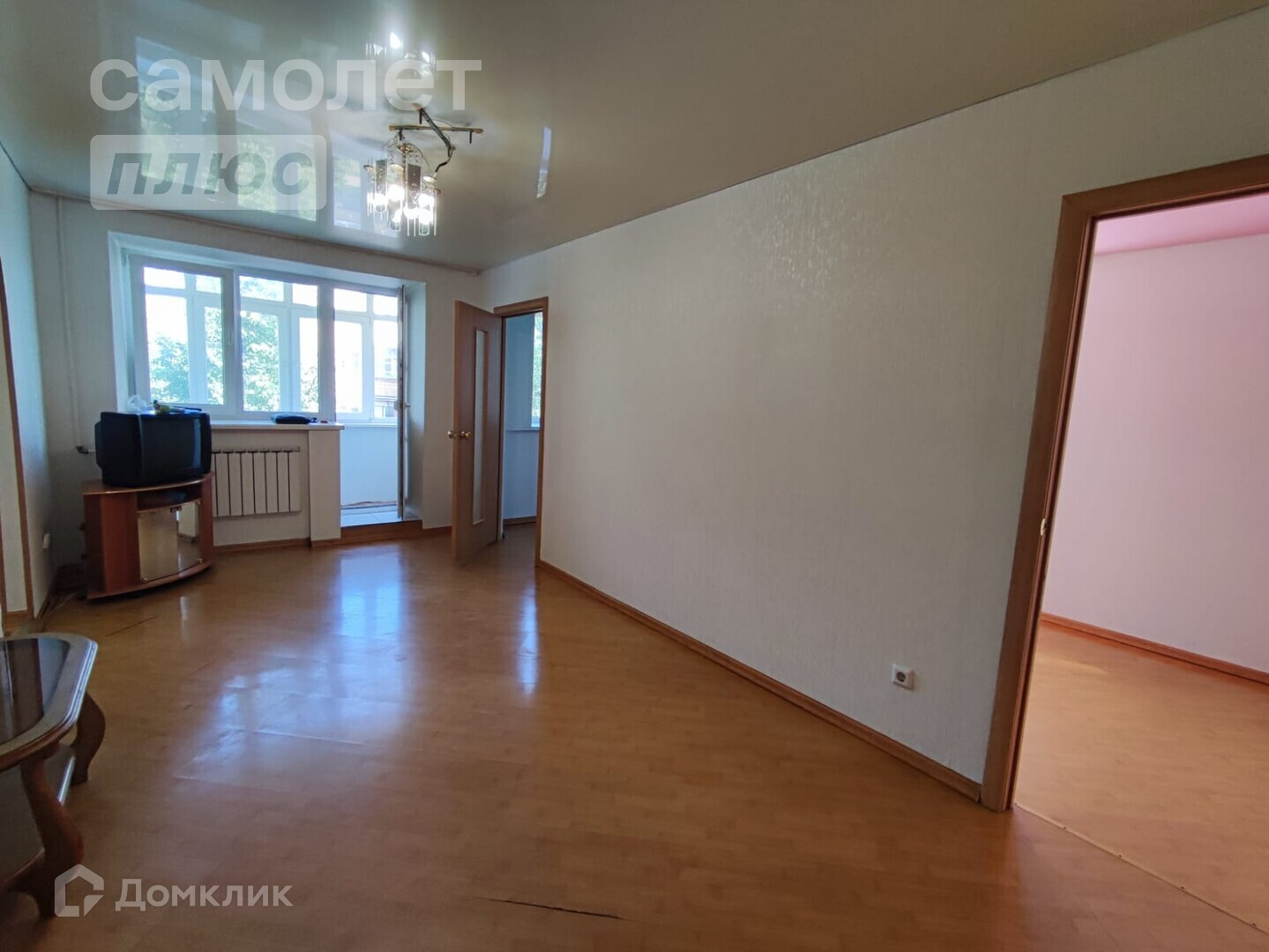 - на полу ламинат, плитка на кухне и в прихожке
