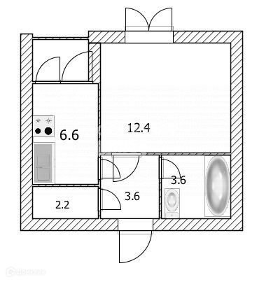 Квартира расположена на 7 этаже/9ти этажного кирпичного дома, общая площадь 29,1 м2.