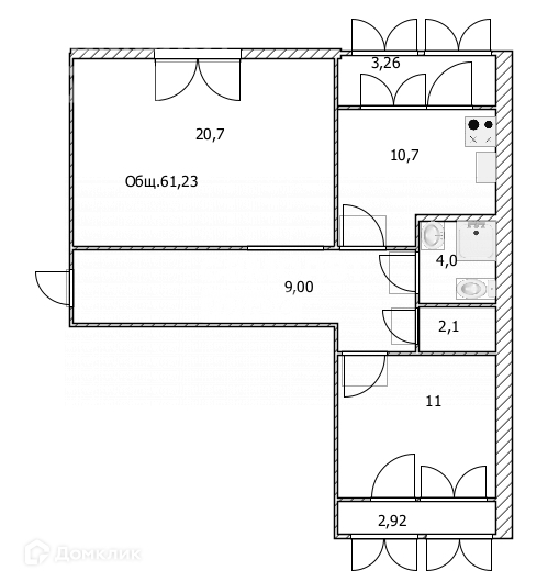 Общая площадь 57.6 м2