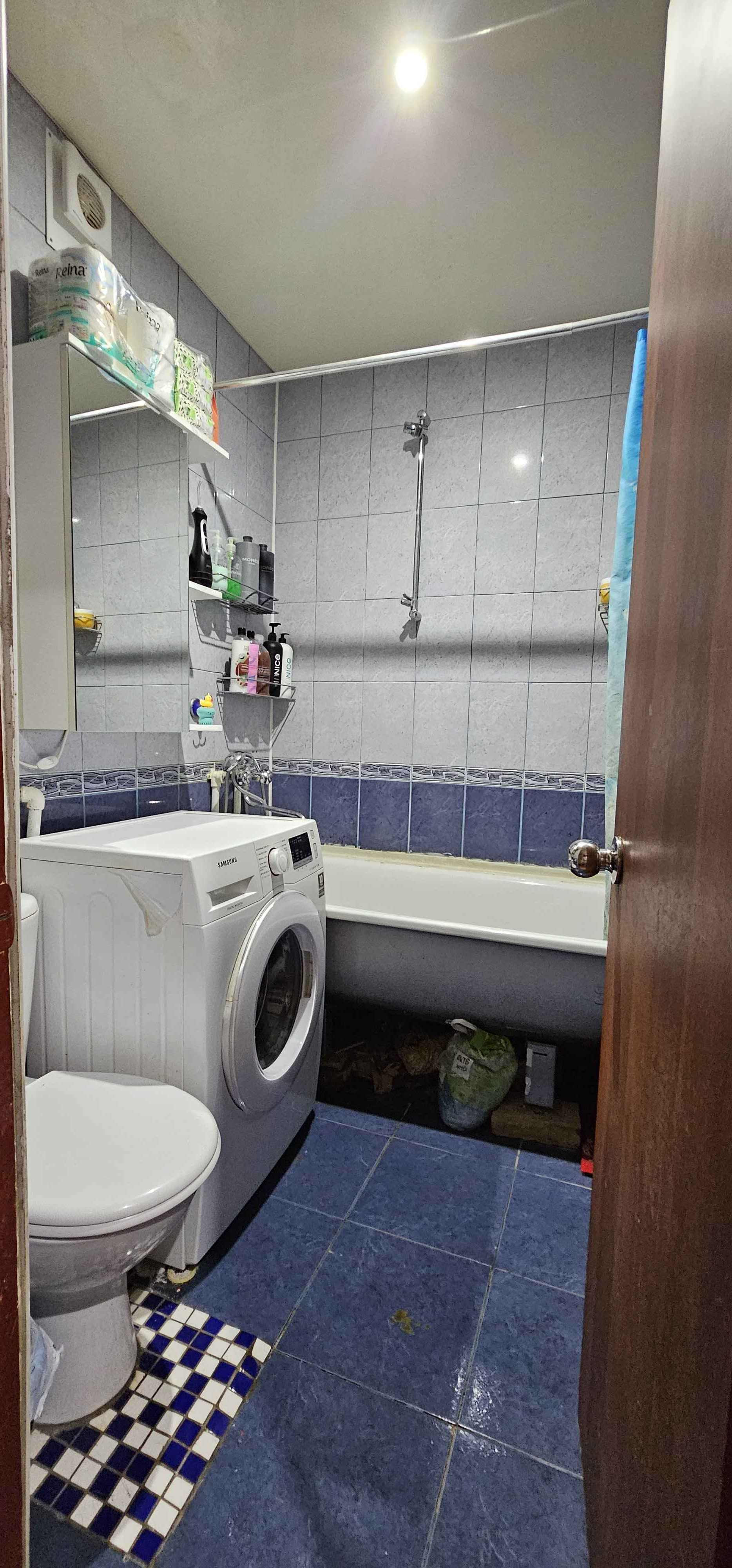 Санузел в плитке, канализацию год назад заменили полностью.