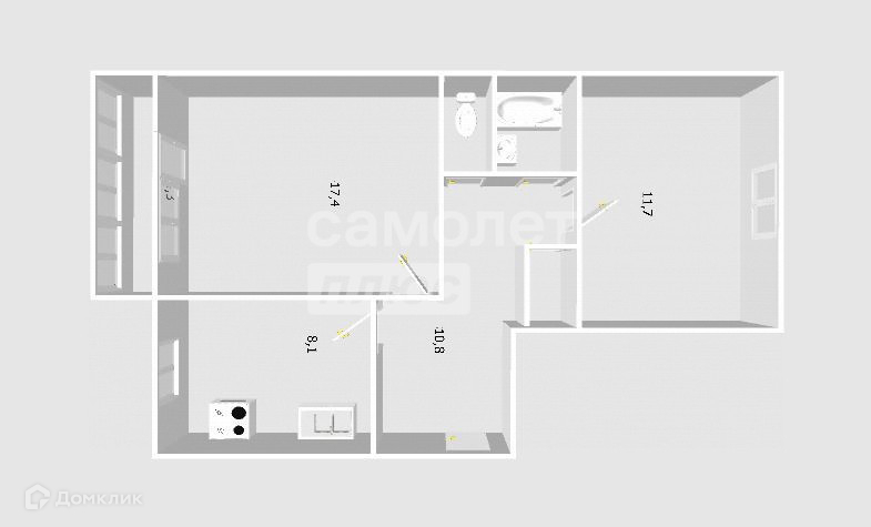 Общая площадь 52 м2
