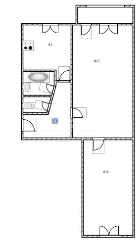 Жилая площадь 30.7 м2