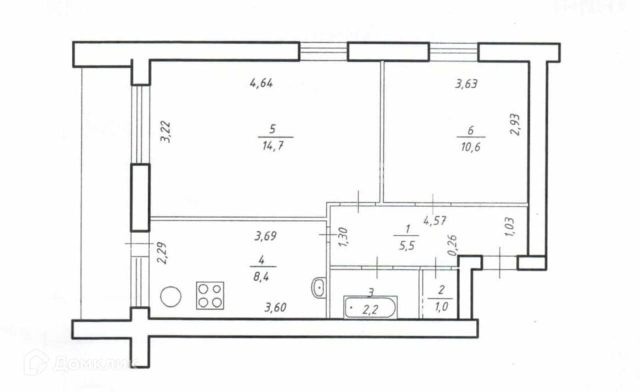 Общая площадь 42.4 м2