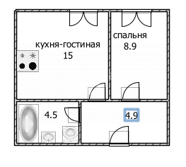 Жилая площадь 8.9 м2
