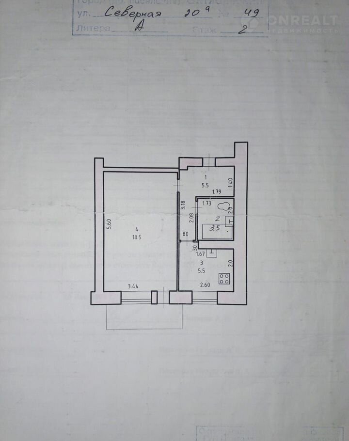1-комнатная квартира, 33 м2, этаж 2 / 5, на продажу в Октябрьском, Северная улица, 20А