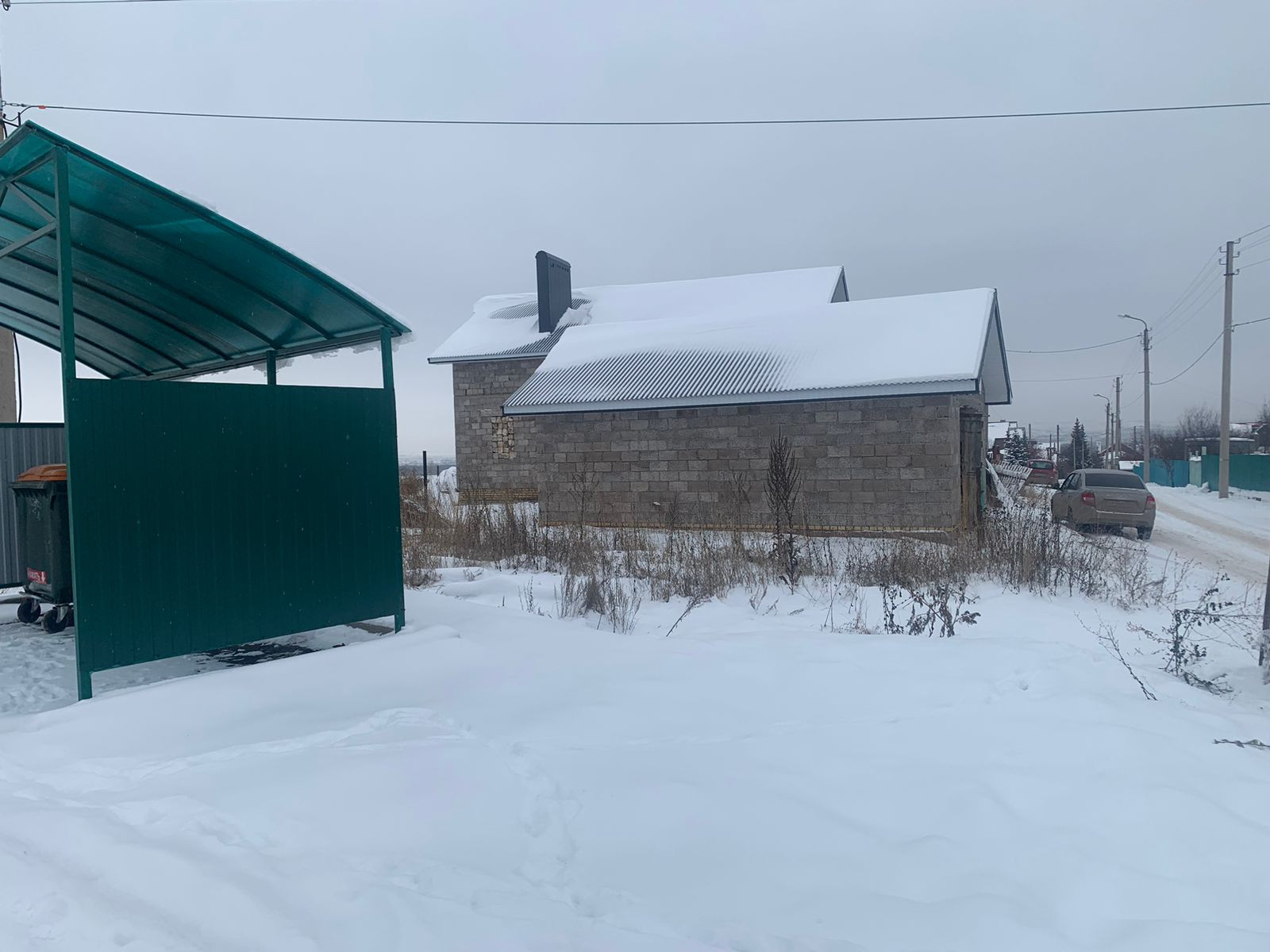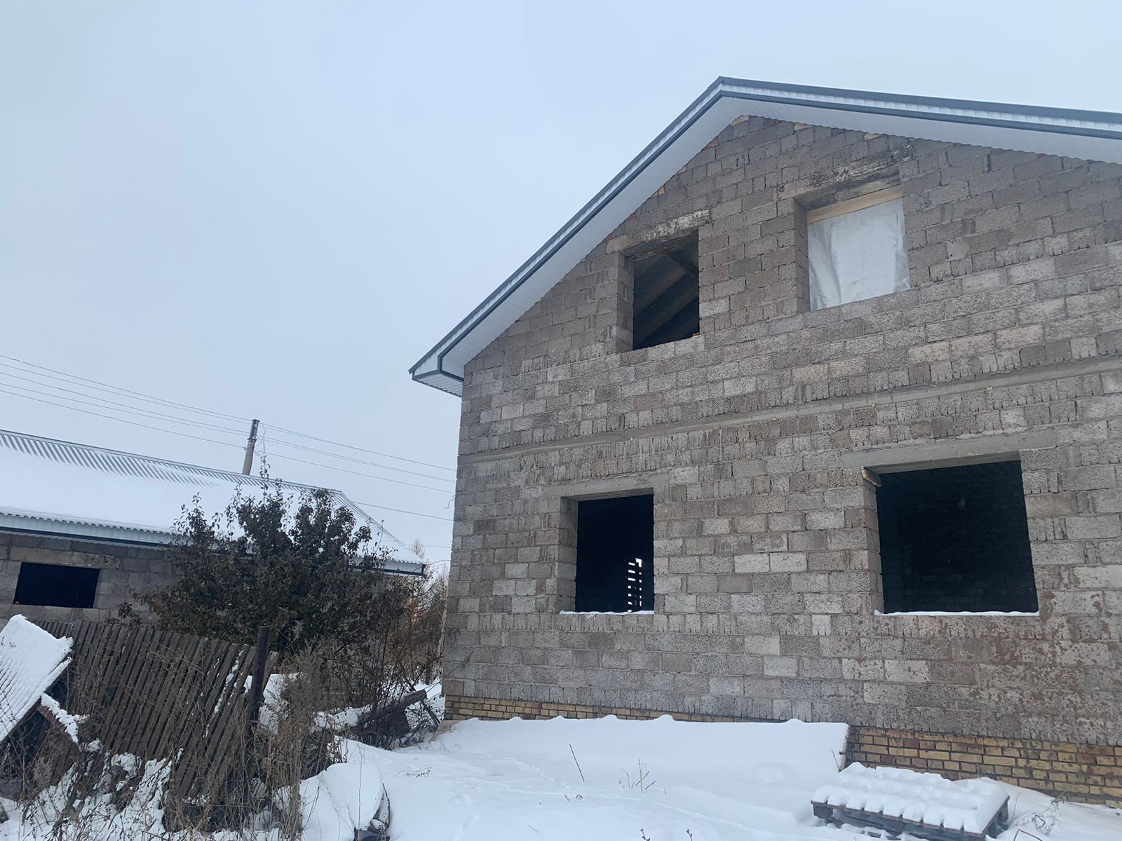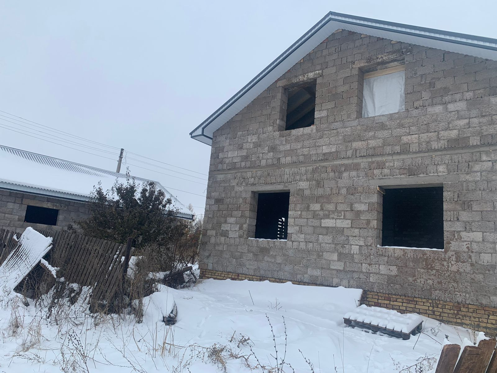 Рядом с домом стоит недостроенный гараж