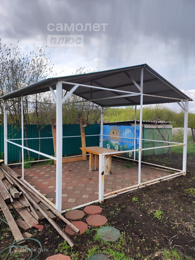 Участок 6 соток огорожен забором из профнастила, беседка, бытовка для садового инвентаря. Небольшой уютный домик .