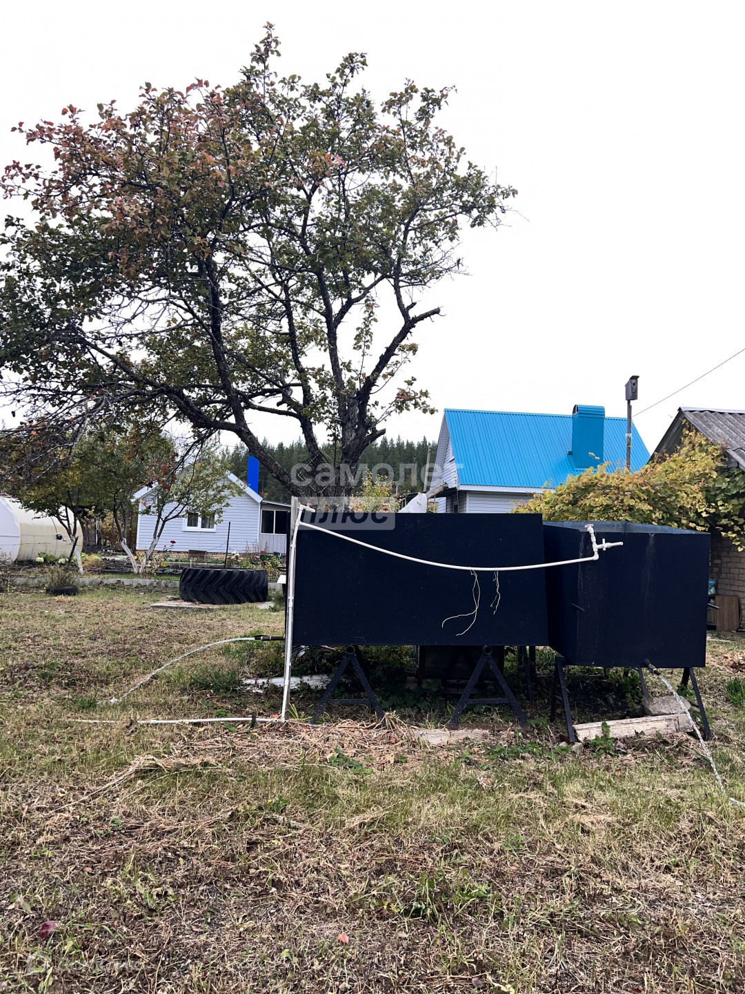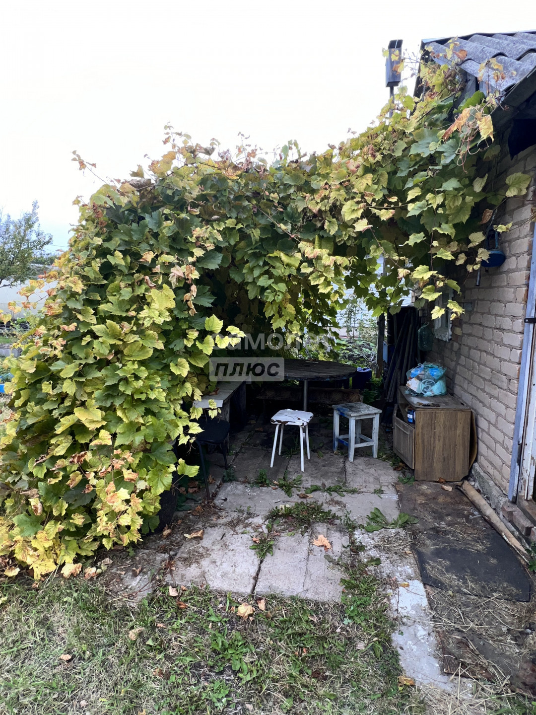 На участке имеется большая емкость для воды,также разные  многолетние  кустарники,виноградники и деревья!
