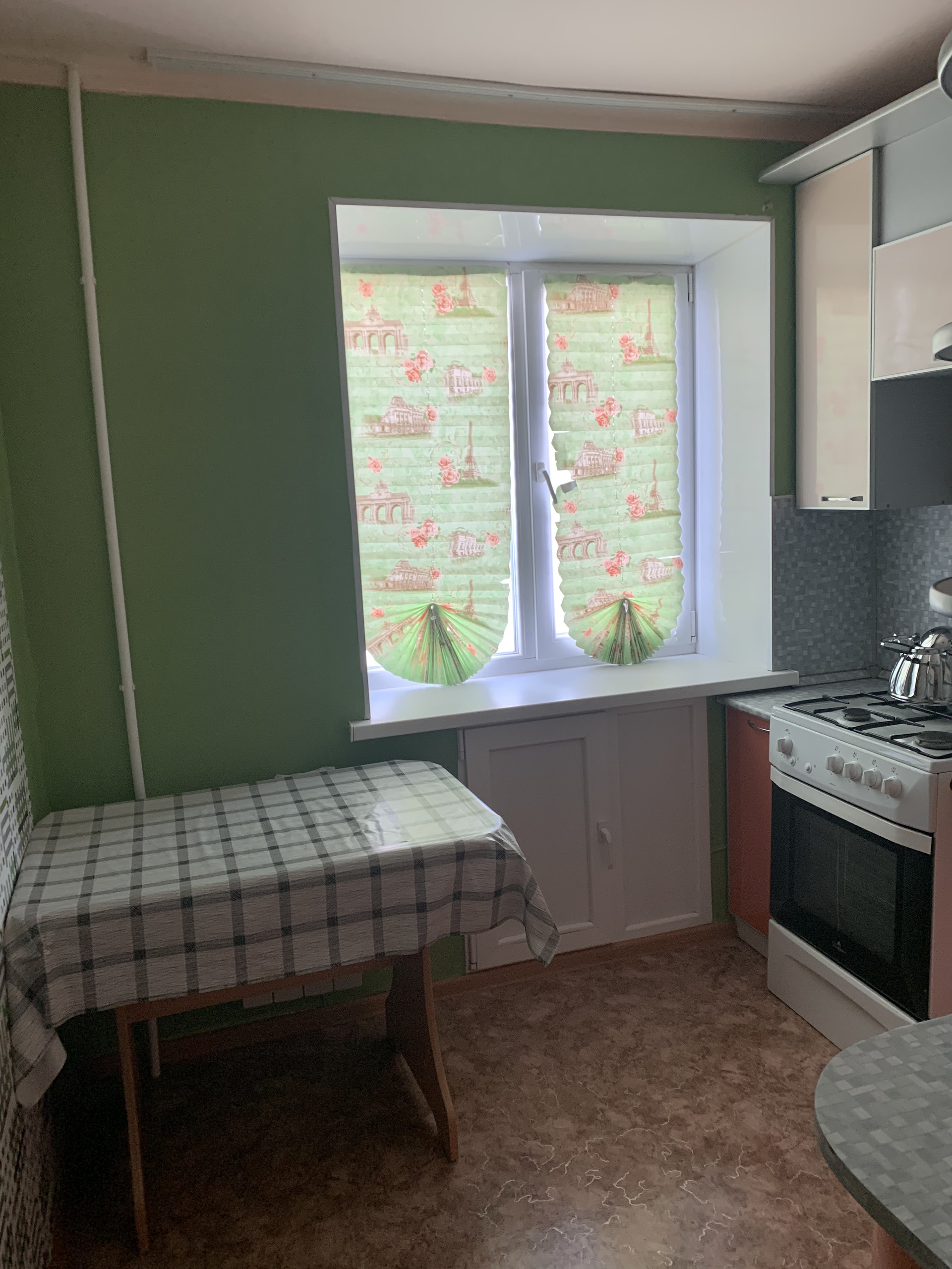 В квартире газовая калонка, хорошие обои, линолеум, натяжные потолки, пластиковые окна. Тихие соседи. С животными нельзя. Плата 12000 рублей в месяц + счетчики вода и свет!