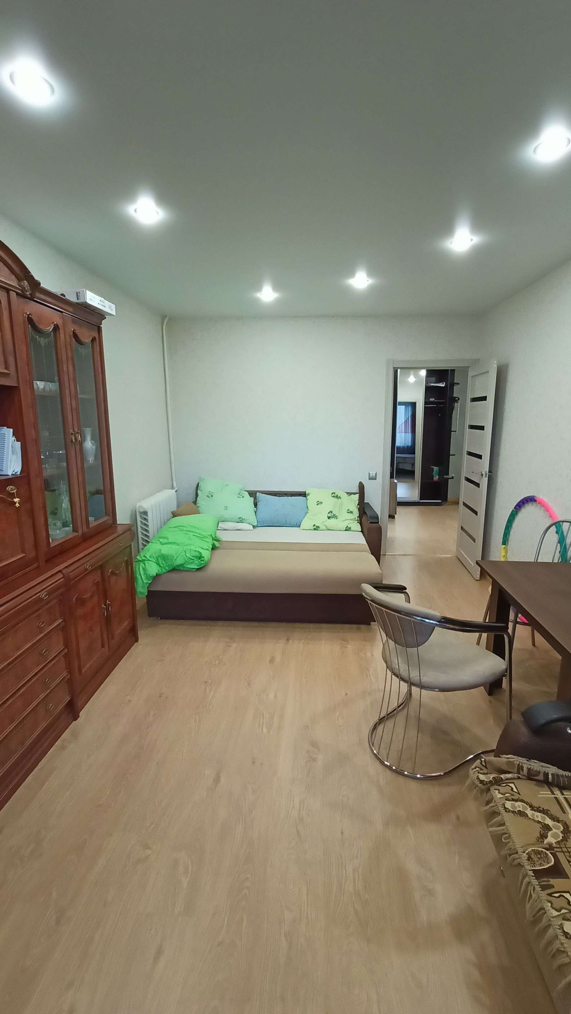 комнаты раздельные, везде стеклопакеты, ламинат, лоджия застеклена, большой коридор, солнечная сторона, очень теплая квартира, ванна кафель, замена труб и сантехники, замена межкомнатных дверей, замена входной двери, натяжные потолки, остаётся частично мебель, хорошие соседи, чистая, светлая квартира.