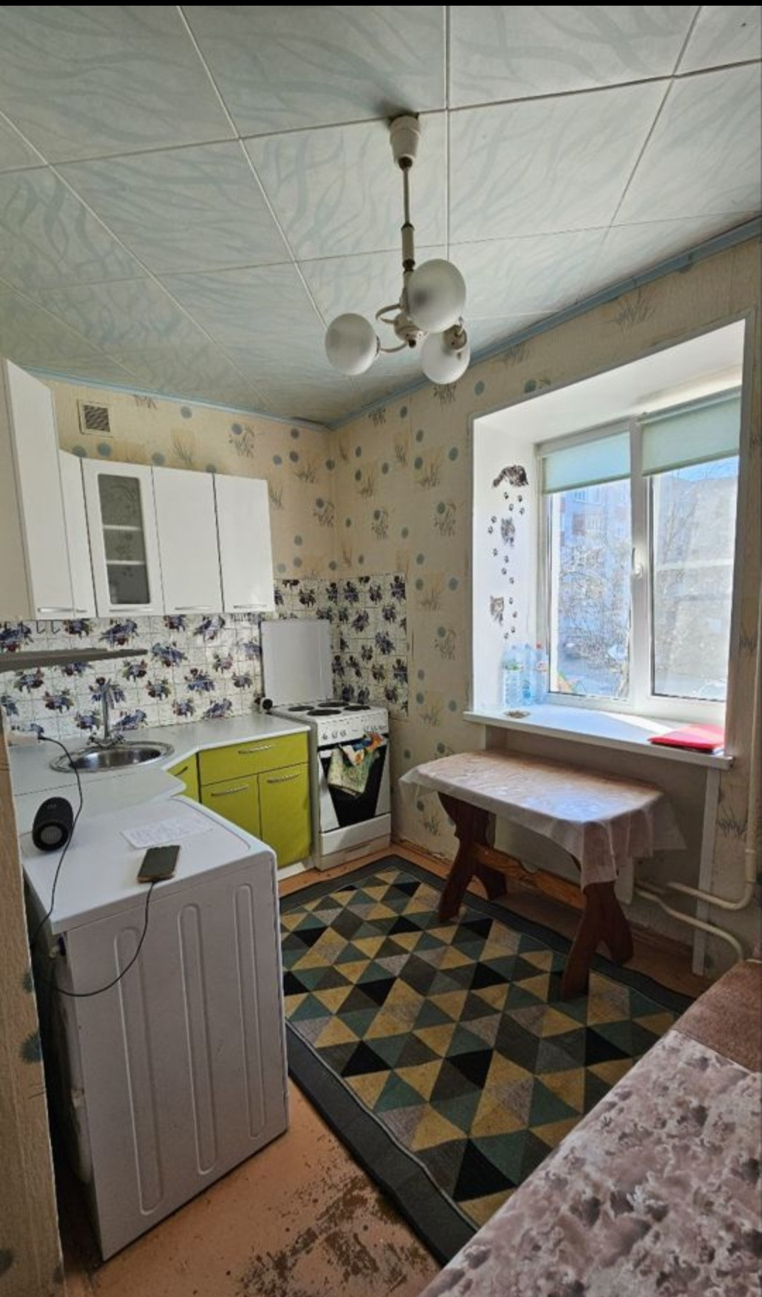 Остается вся имеющаяся в квартире мебель, кухонный гарнитур, плита.