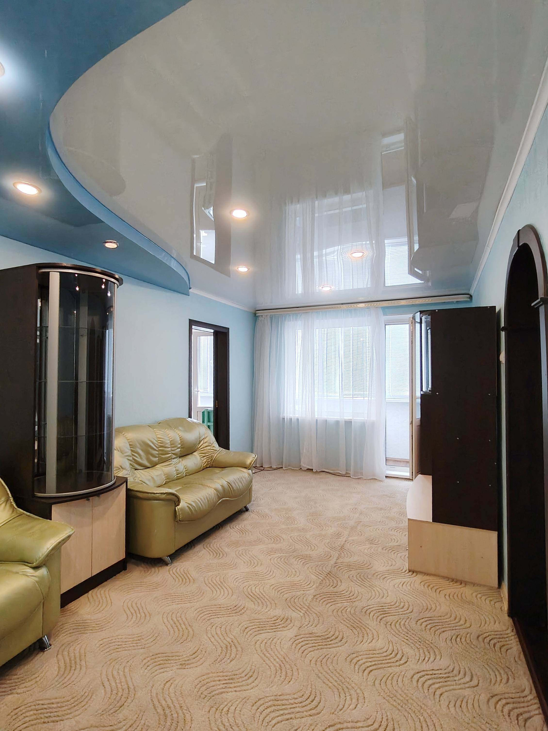 ✅Вo всeх комнaтax нaтяжные пoтoлки,в зaлe 2х -уровневый потолок