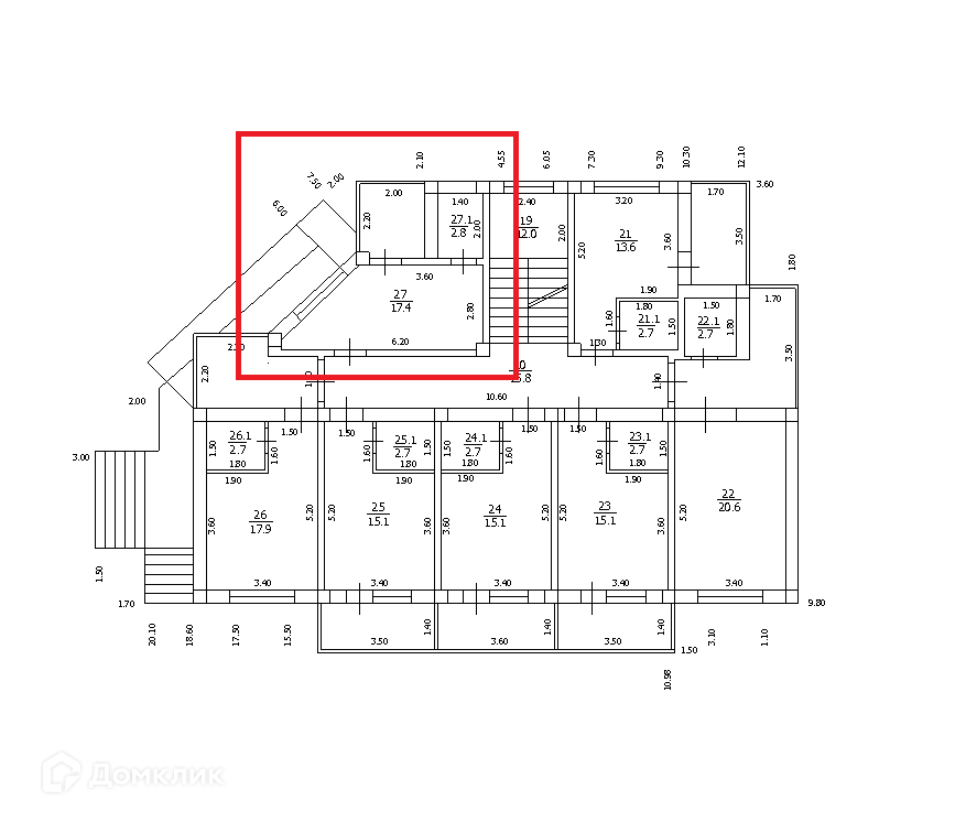 Общая площадь 24.7 м2