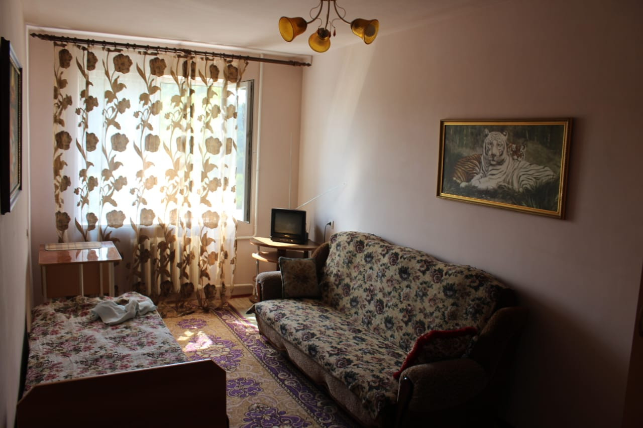 Окна выходят на обе стороны, центральный газ., два балкона, раздельный сан.узел.  Ремонт косметический. Территория огорожена, установлен шлагбаум.