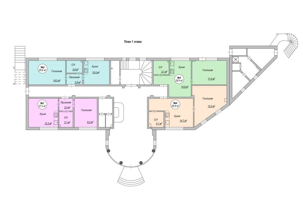 Общая площадь 29.6 м2