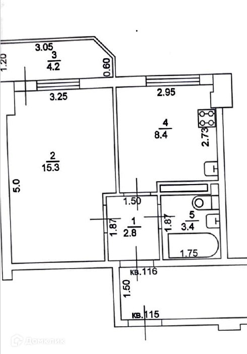 Общая площадь 34 м2