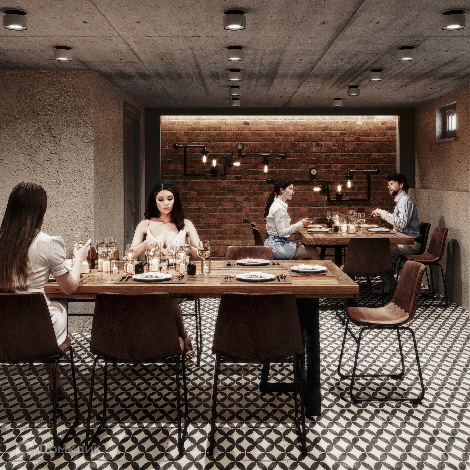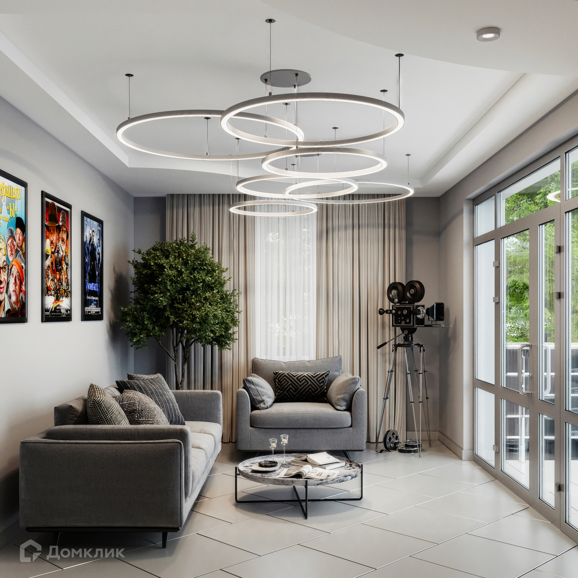 На цокольном этаже кухня-студия самообслуживания и кинозал.