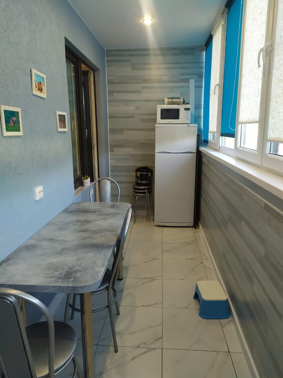 Лоджия 9 кв.м. с выходом из кухни и комнаты, с которой открывается потрясающая панорама на горы.