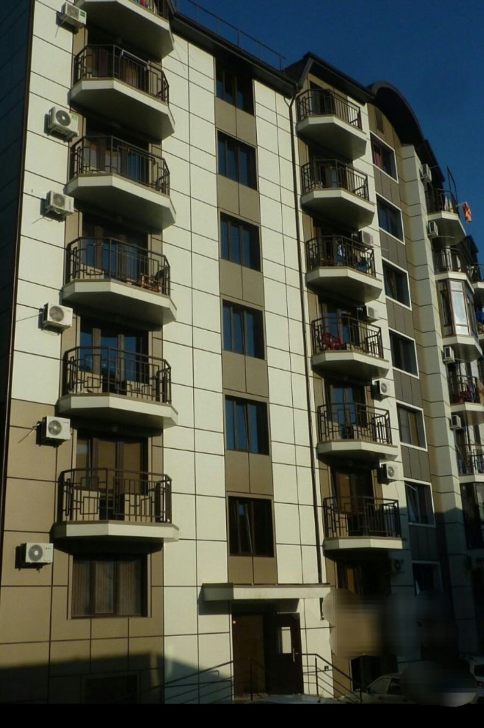 Окна дома смотрят на комплекс "Серебрянная волна". За счёт жилого цокольный этажа, первый этаж в выигрыше, особенно, после возвращения с моря.
